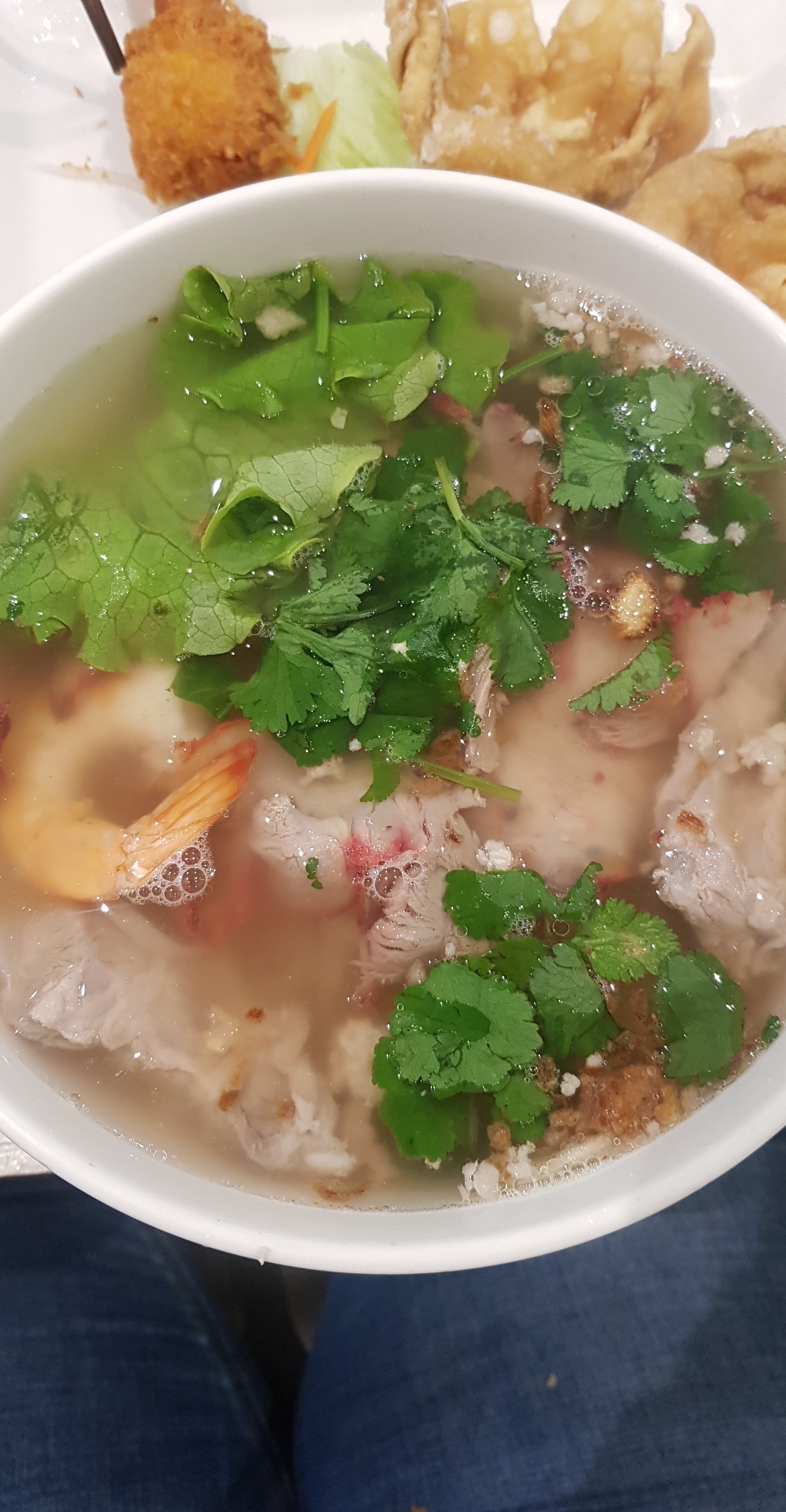 Bonne cantine, j'ai pris une soupe richement garnie, porc, crevettes ... tout est dans la photo du menu. Légèrement pimentée, elle était très réconfortante et copieuse. Un petit problème, malgré toutes les serviettes mises autour du cou ma chemise a pris cher 😂