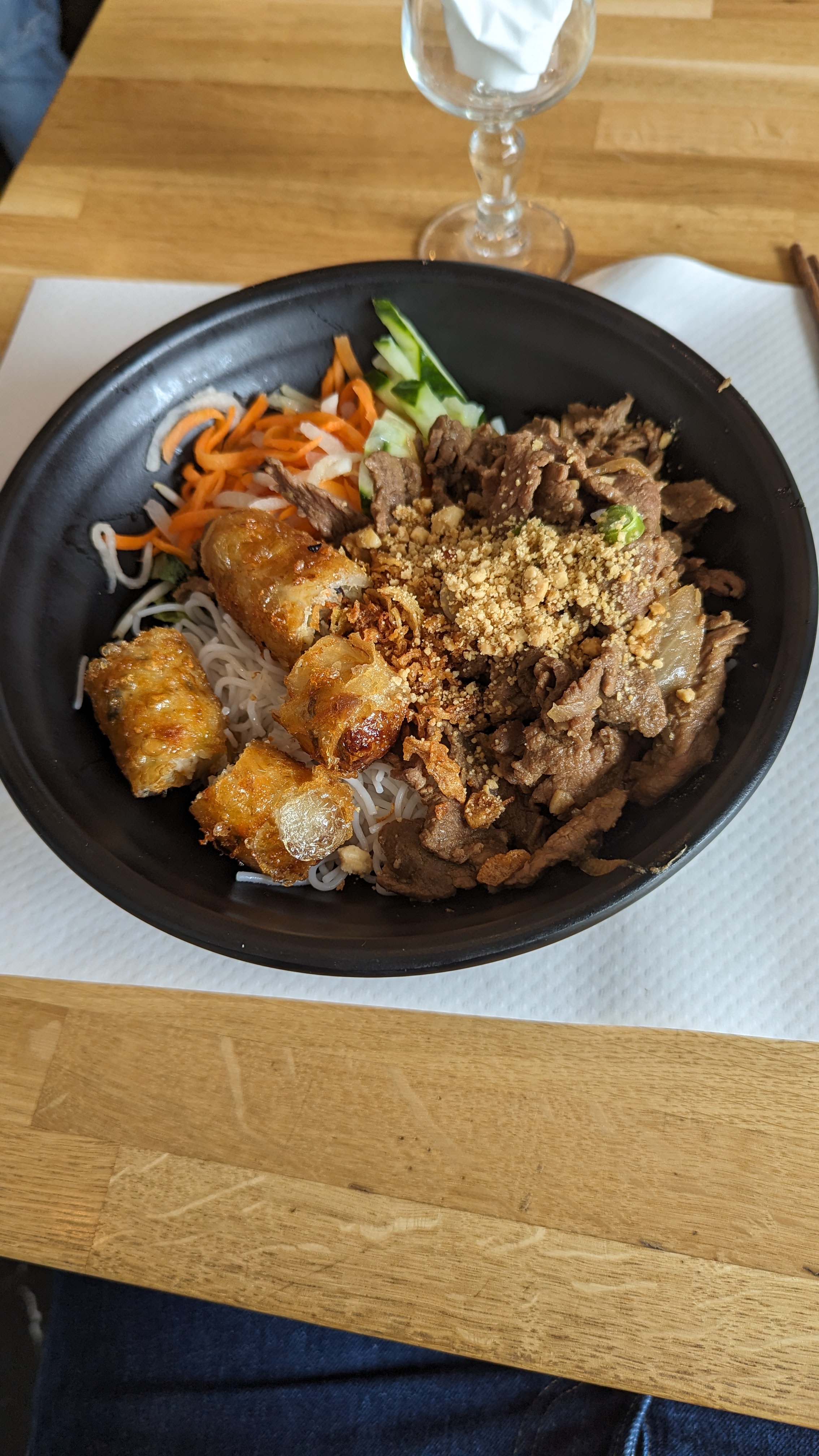 Plats très copieux. J'ai pris le bobun classique. Très copieux mais seul bémol : les nems au porc n'étaient pas à mon goût malheureusement. Accueil agréable et service rapide. Je reviendrai