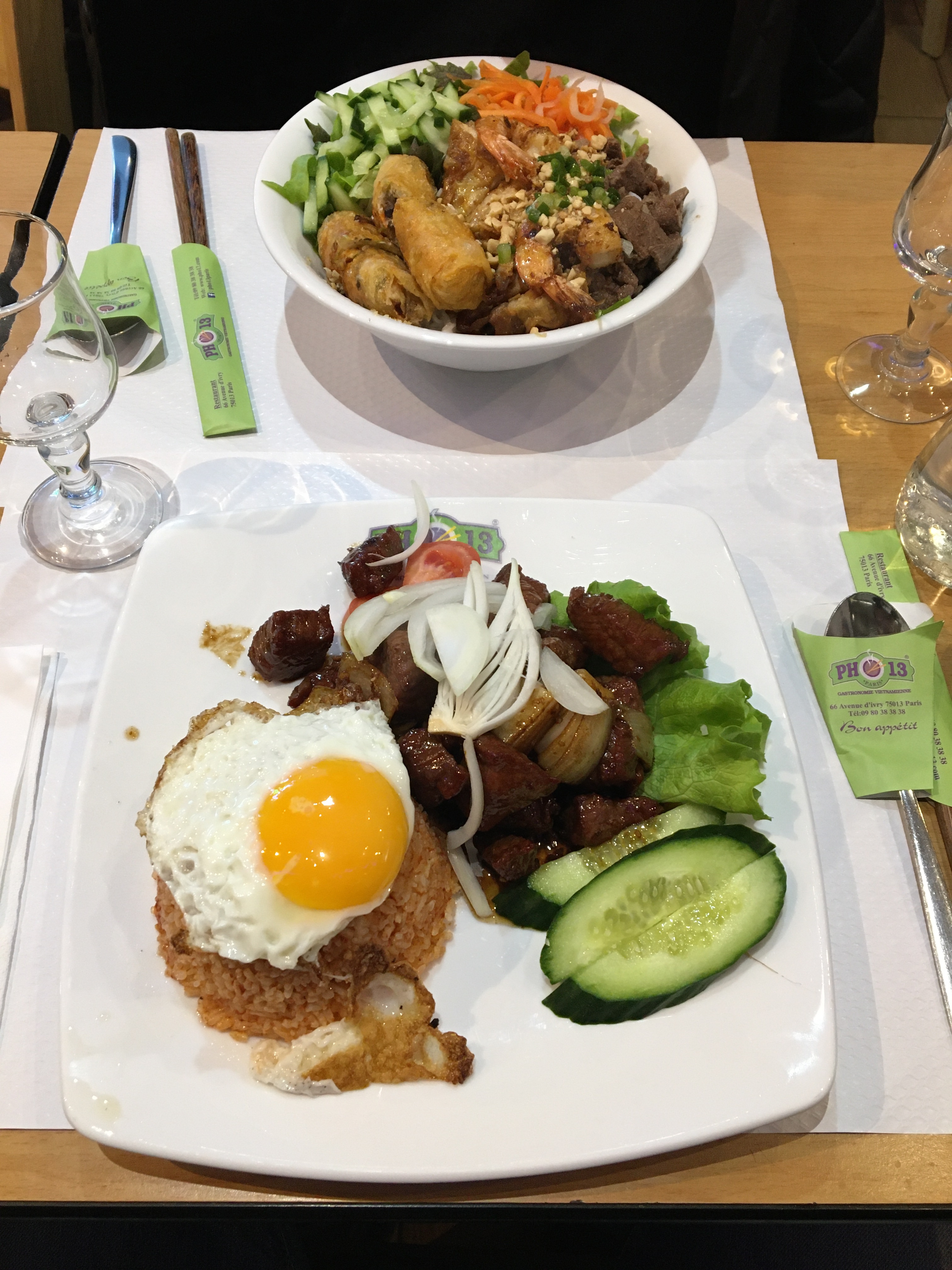 #viet #pho #paris j'ai mangé mon plat préféré, les pâtes de riz sauté aux viandes variées (crevettes et viande) franchement EXCELLENT ! je reviendrai pour essayer le pho