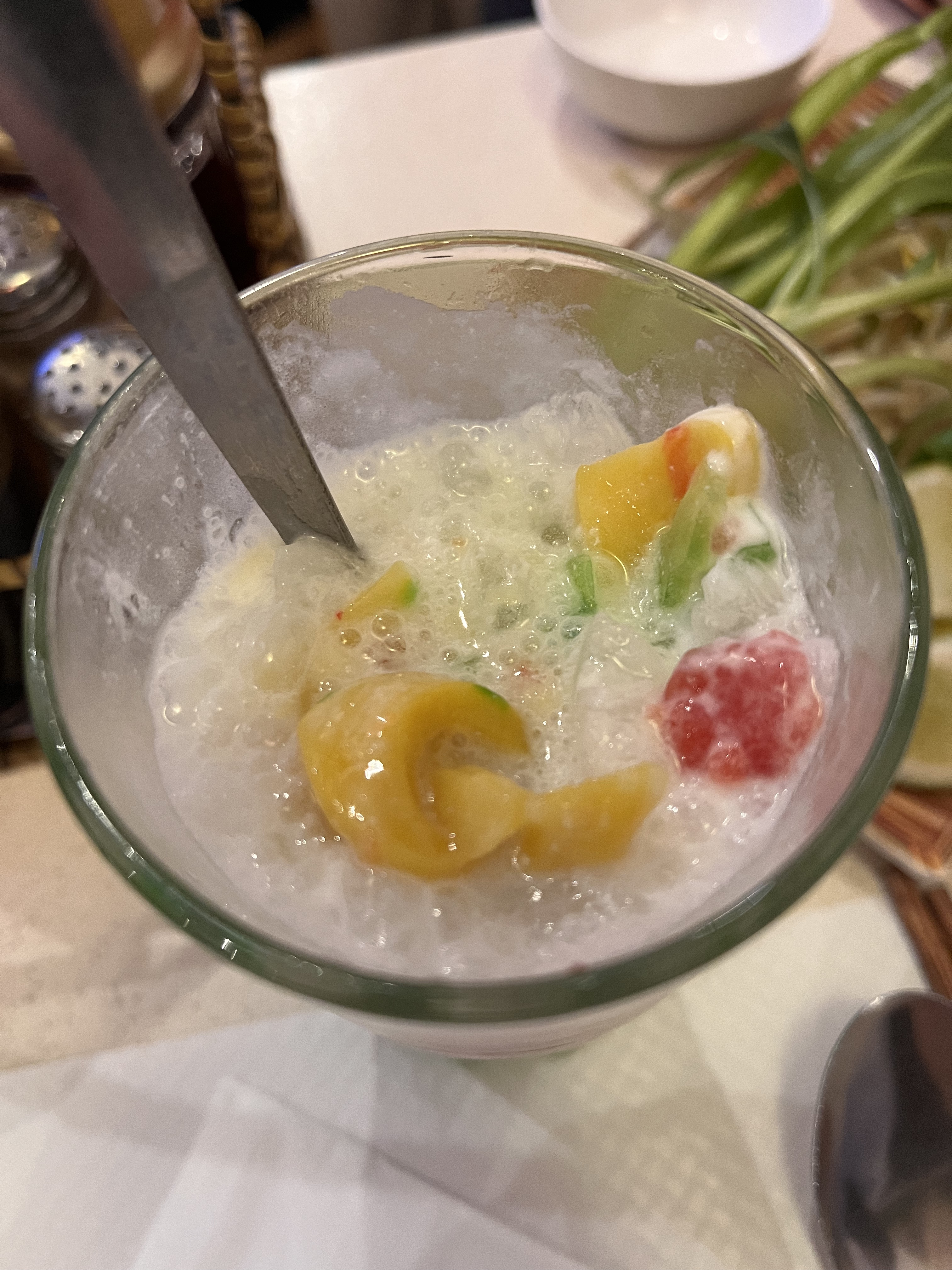 Le Bo Bún au porc est délicieux ! La portion est parfaite, vous serez rassasié. Le dessert de haricots, tapioca et lait de coco est la cerise sur le gâteau.
