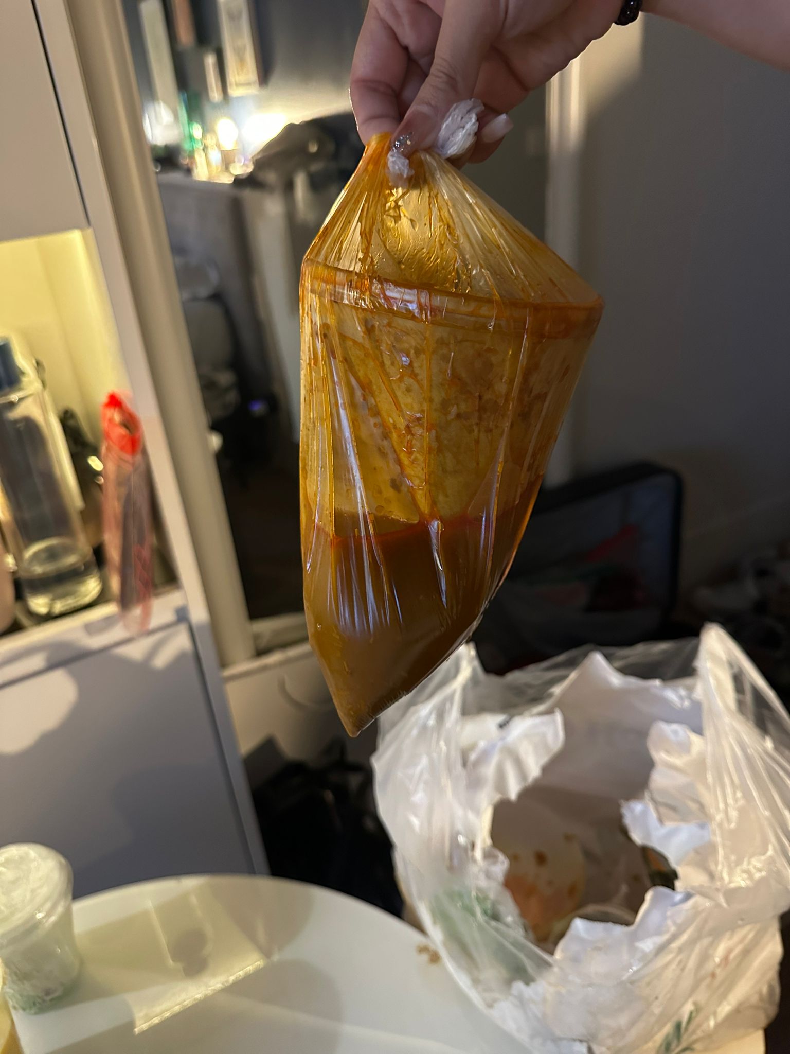 Mauvais colis qui a entraîné une fuite lors de la livraison La nourriture est correcte sauf que la quantité est si petite Toutes les photos prises avant de commencer à manger Les nouilles de riz avec une grande portion m'ont semblé peu différentes des portions normales.