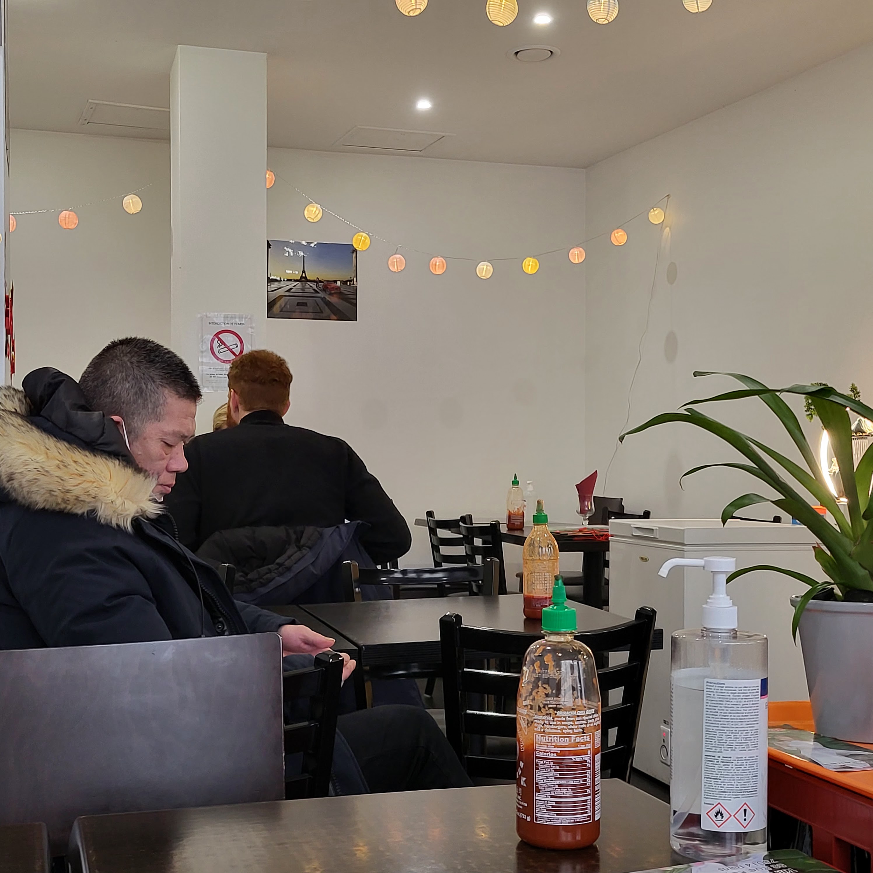 J'ai essayé cet endroit car il était ouvert pour le dîner tôt et juste en bas de la rue de mon hôtel, et cela n'a pas été déçu. Le petit pain était délicieux, le service était attentionné et les prix raisonnables. Une marque américaine familière de sauce sriracha sur la table était une touche surprenante mais bienvenue, même si j'en ai appliqué un peu trop. La salle à manger était relativement calme pendant mon séjour, mais il y avait un flux constant de commandes de ramassage qui sortaient de la porte.