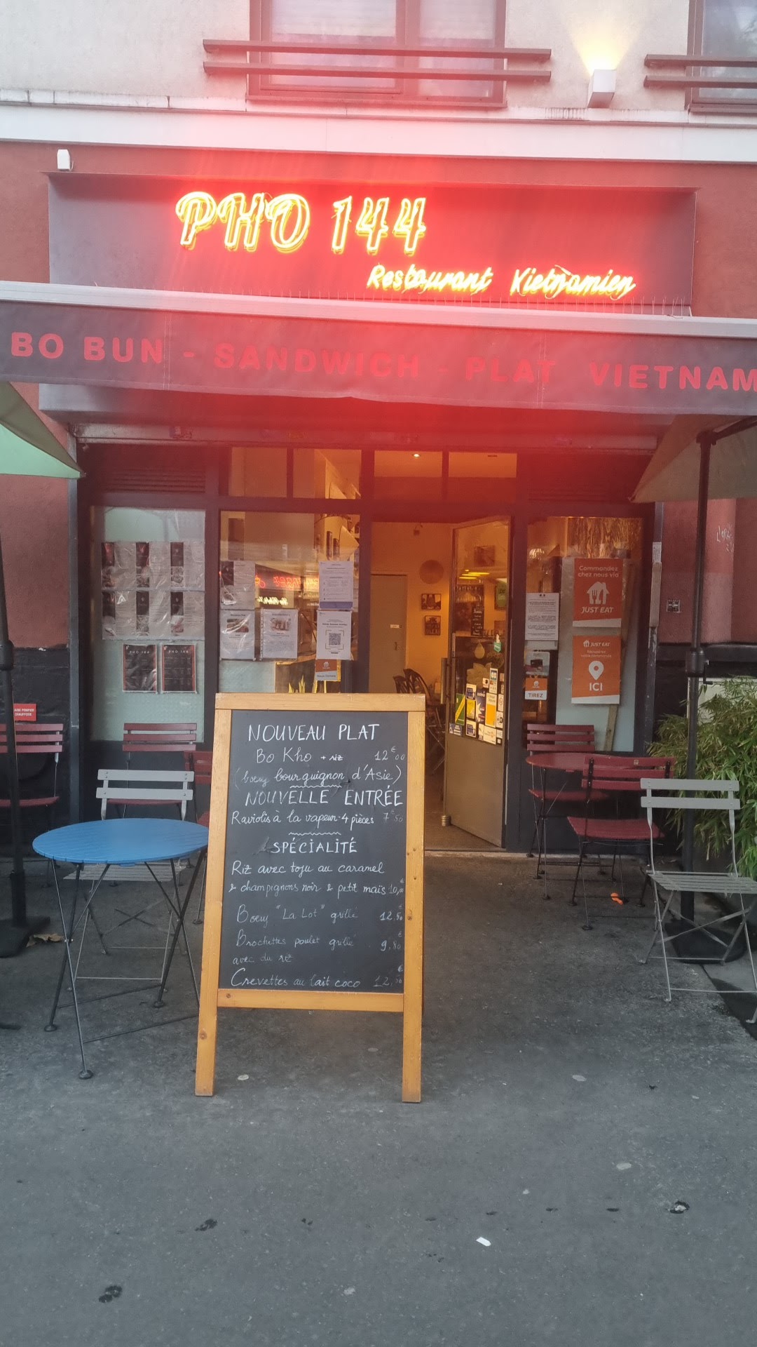 super bon: des parfums d'Asie qui changent de tout les petits resto FrèresTang où t'as l'impression de manger toujours la même chose quelle que soit l'adresse ... rapport qualité prix trés honnête ; petite salle et toute petite terrasse (20places) ne pas hésiter à réserver! ... habitant à coté le PHÔ144 va devenir ma nouvelle cantine ... seulement 3* pour le service : pas trés efficace vite débordées mais ils sont tellement gentils ... et étant du métier j'ai la sale habitude de voir tout les défauts ...