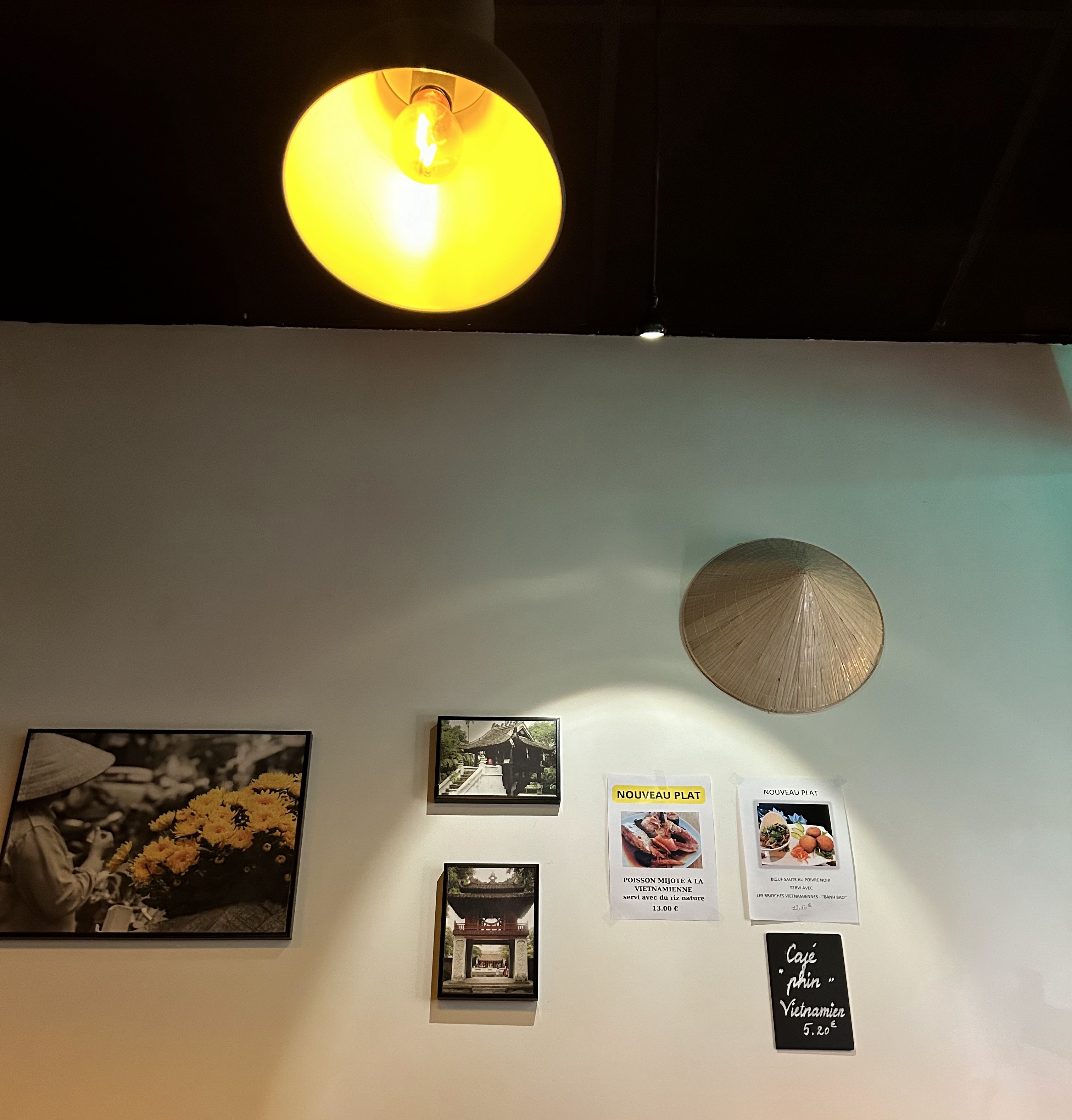 Cuisine vietnamienne authentique! Le pho est bien cuit, savoureux et ne laisse pas soif ! Je reviendrai pour essayer d'autres repas 😁 C'est un endroit mignon et petit, très charmant je vous conseille vraiment de vous arrêter ici si vous allez à la Villette ;)