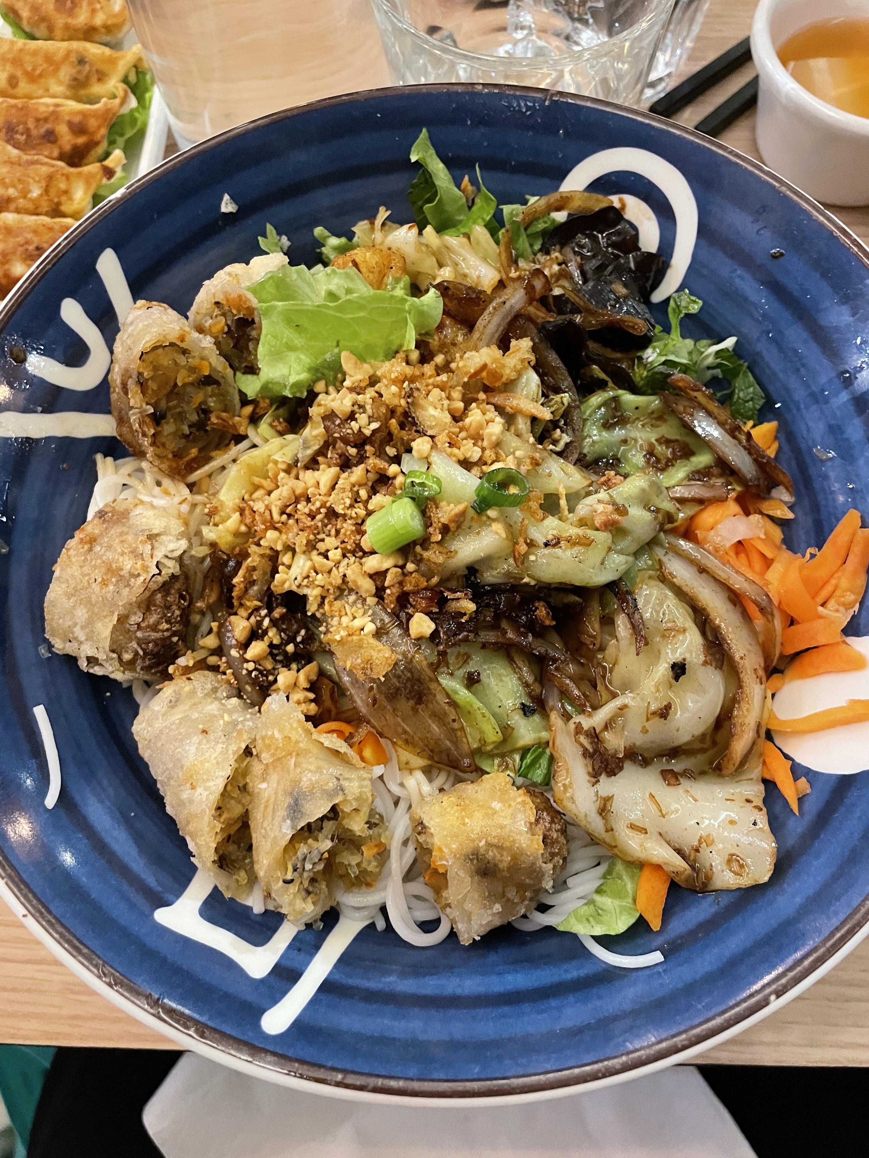 Des bonnes choix vegan, rouleau de printemps au tofu et bo bun au nem, plats très copieux 🎉