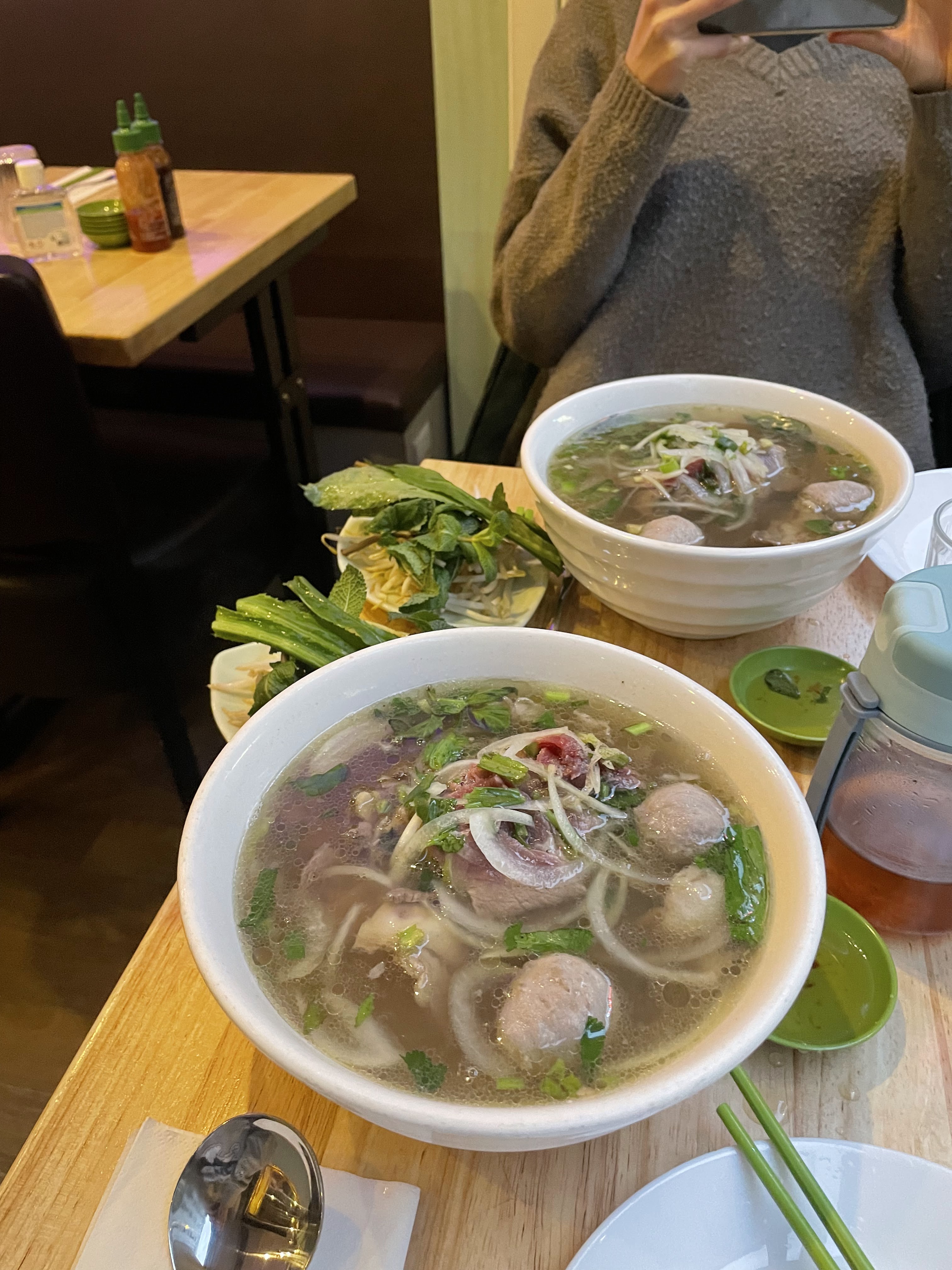 Petit restaurant vietnamien familial qui sert un super pho!! Nous avons pris le pho special, bien savoureux, pas trop gras, nouilles avec une consistante parfaite et bien infusées du bouillon (servis super chauds, comme je les aime!). La portion est parfaite (pas trop grande) 💗 On regrette un peu le manque d’herbes à disposition et d’oignons/piment (on a eu un petit brin de menthe, de basilic thai et des pousses de soja) mais le pho était tellement délicieux que c’est négligeable !! Le personnel était très occupé avec beaucoup de queue et de clients à servir mais ils ont été très gentils. Je recommande !
