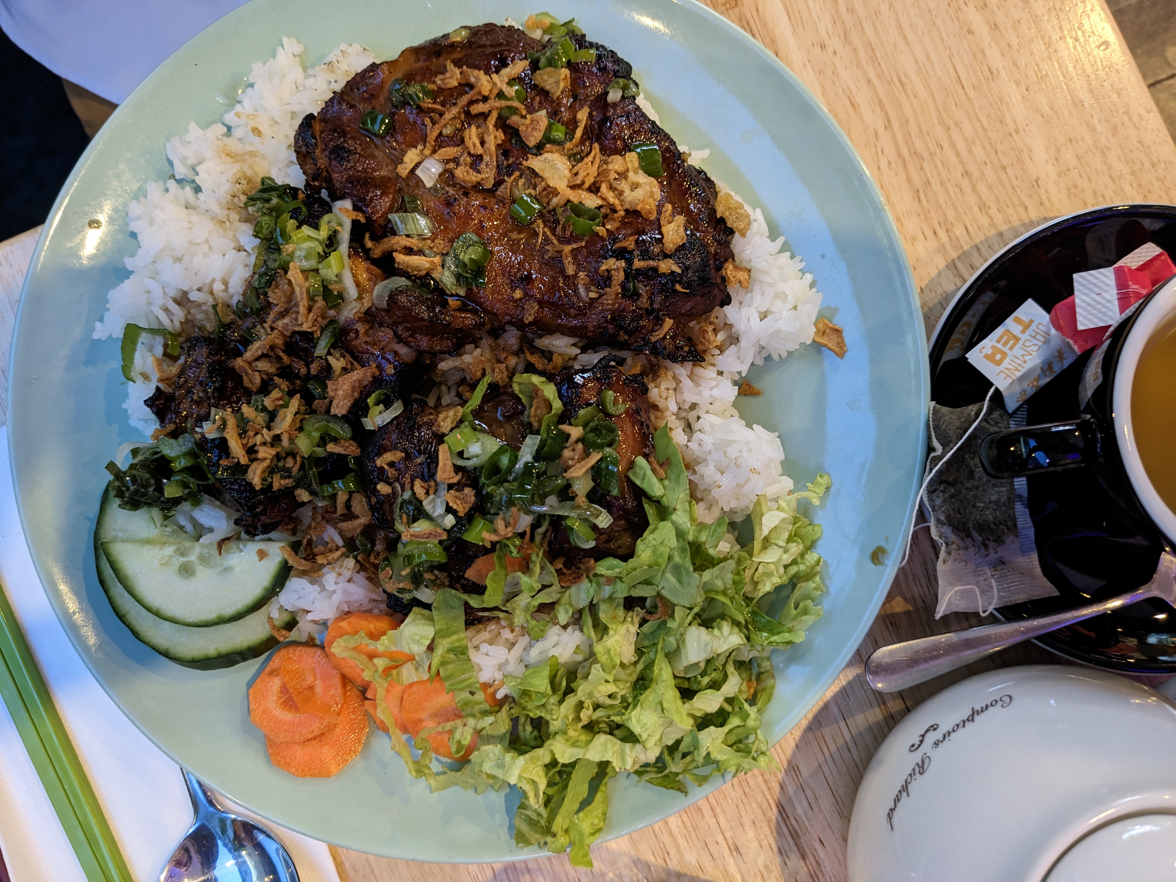 Bobun végétarien délicieux ainsi que le thé ! Personnel très gentil, serviable et rapide !