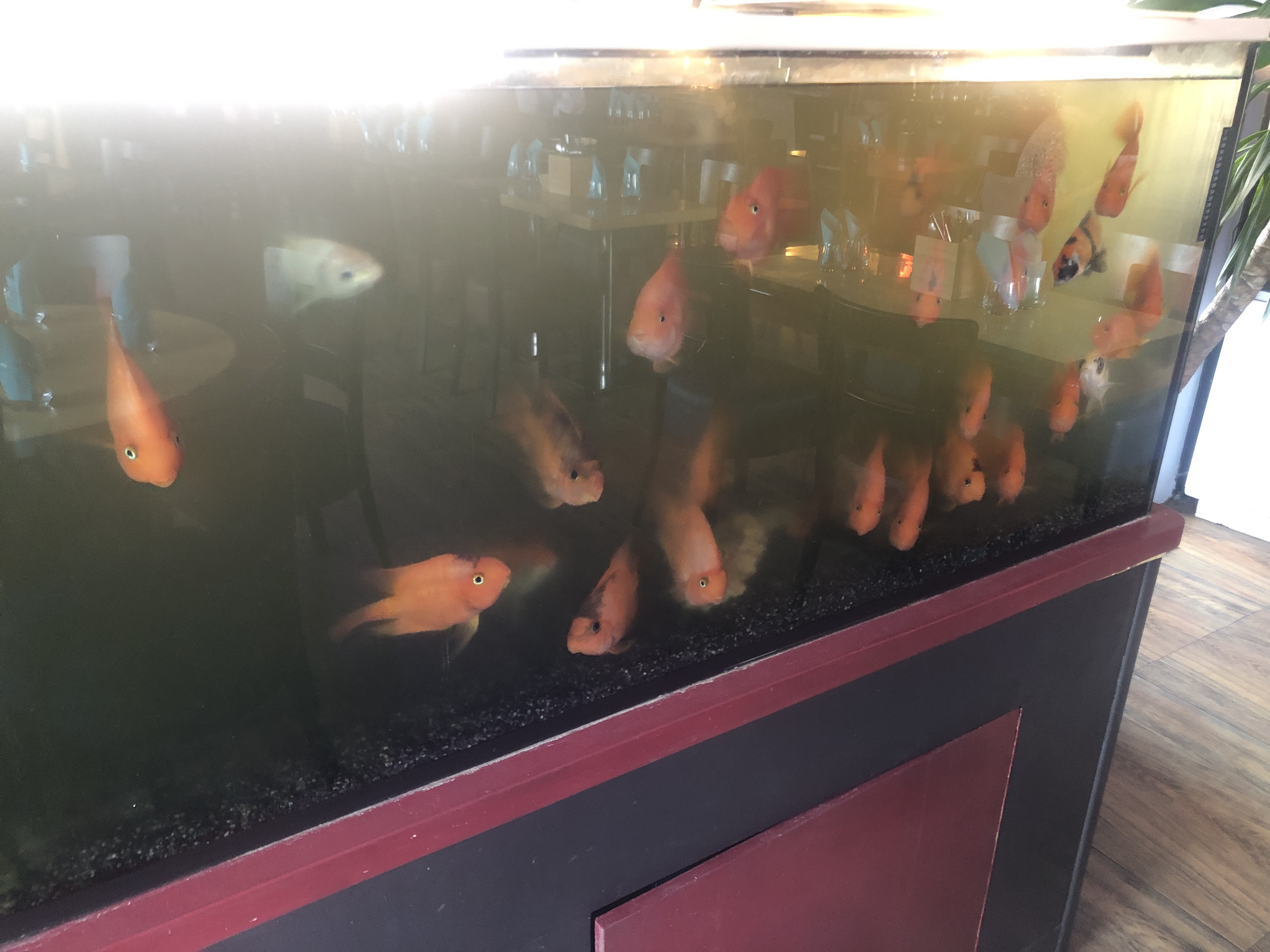 Une catastrophe tant au niveau du prix que de la qualité des plats…rien n’allait! J’ai dîné face à un aquarium d’eau saumâtre rempli de poissons luttant pour un peu respirer. Une vision cauchemardesque digne d’un récit d’anticipation. Je ne dis rien du service car les serveurs faisaient ce qu’ils pouvaient et étaient vraiment réactifs.