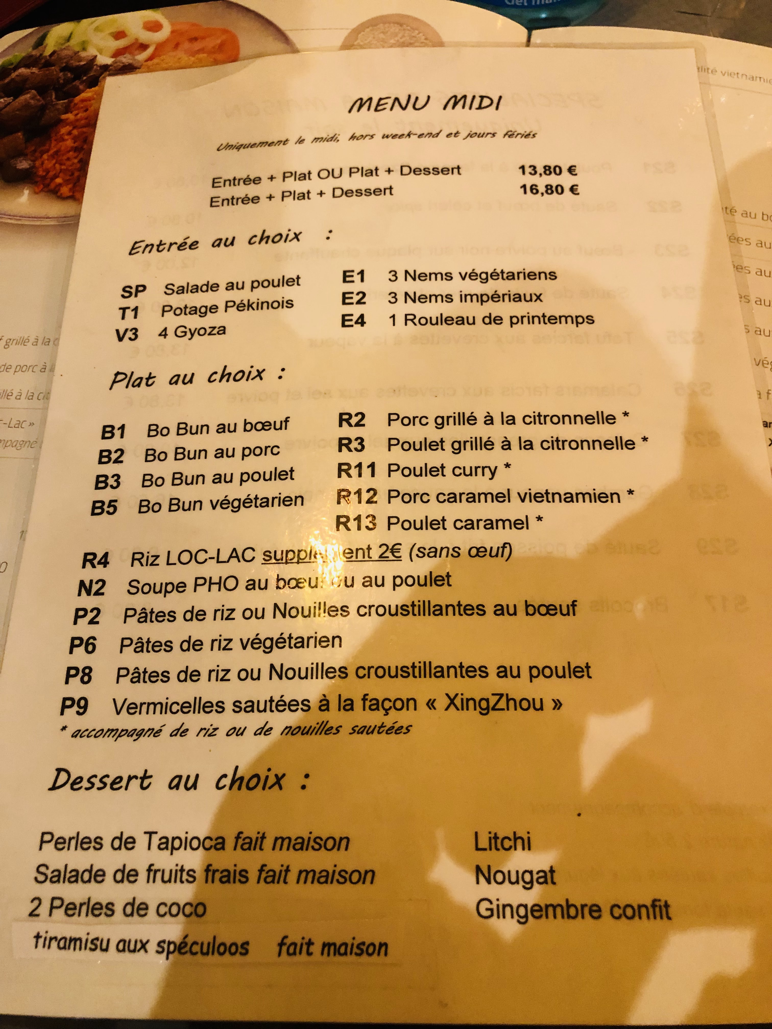 Super resto vietnamien très bonne cuisine Et a un prix abordable Je vous le conseil vivement