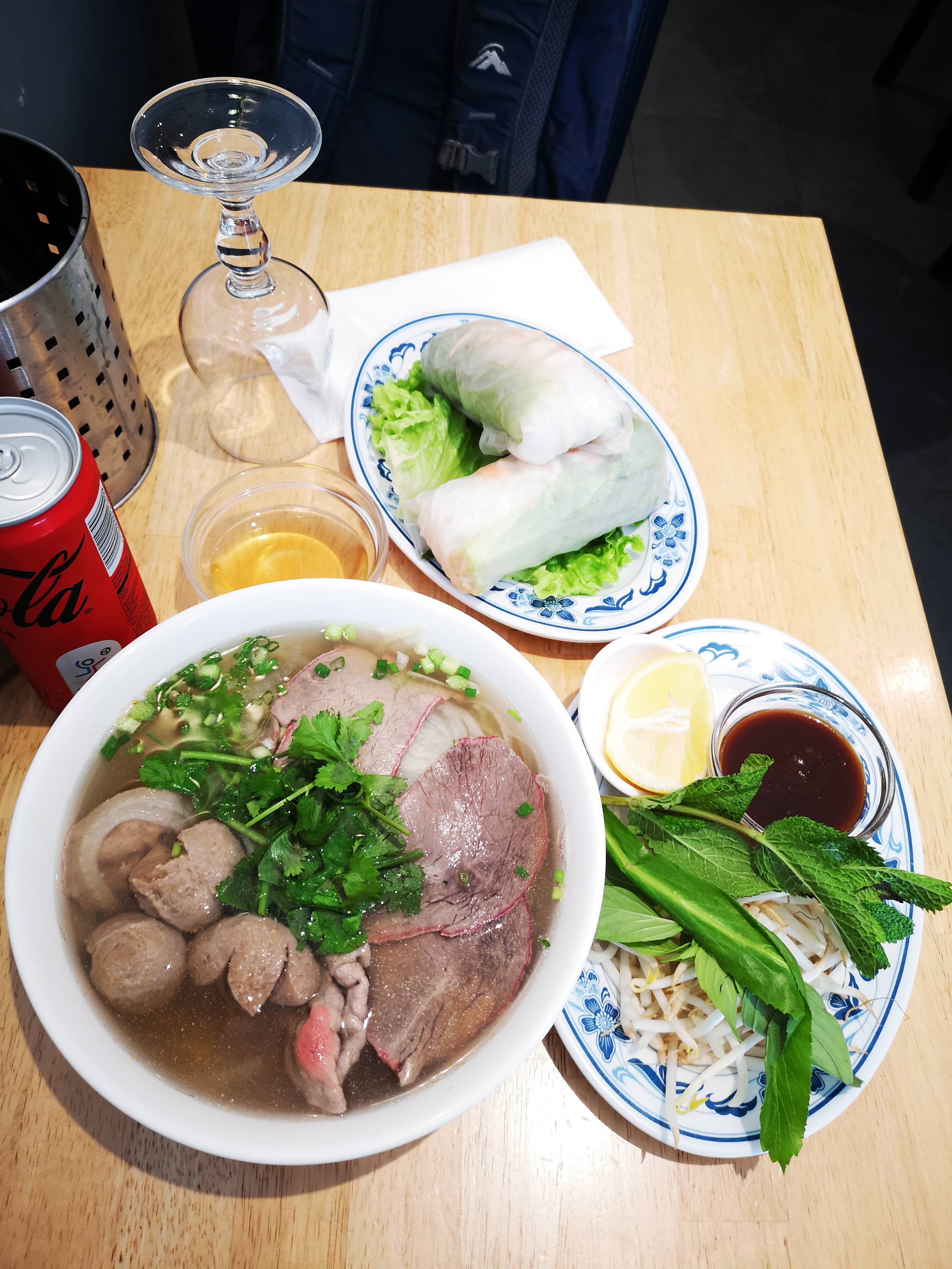 Le phó est trop occidentalisé pour moi : - le bouillon n'est pas assez gras (le bon gras qui donne le goût) - il n'y a pas assez d'herbes (c'est ce qui assaisonne et donne aussi du goût !)