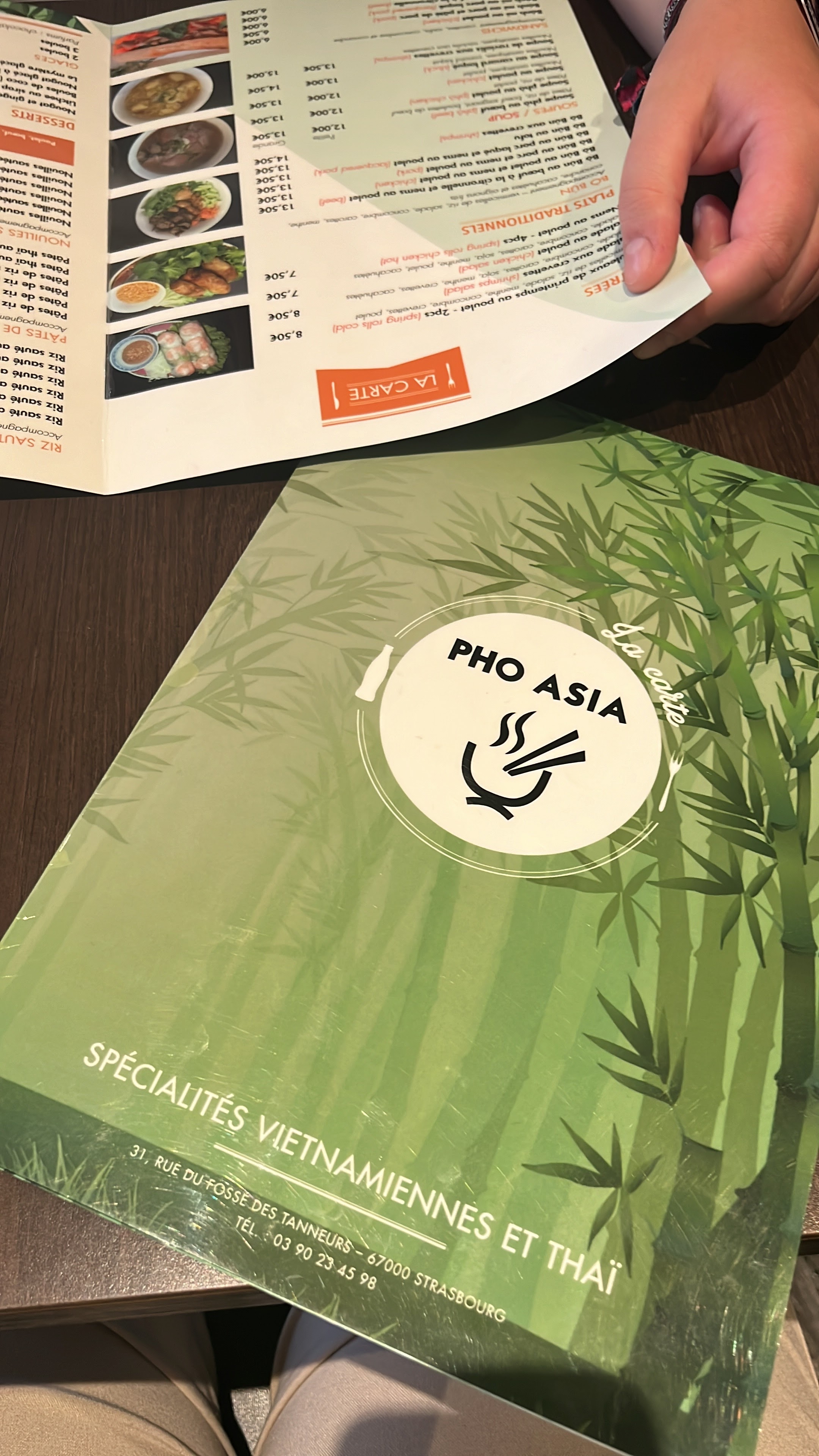 Nouilles de riz sautées aux crevettes ⭐⭐⭐⭐⭐ Pho au bœuf ⭐⭐⭐⭐⭐ Pho incontournable à Strasbourg C'est meilleur que les ramen d'en face et on ne fait pas la queue Le patron est très gentil Les toilettes sont très propres