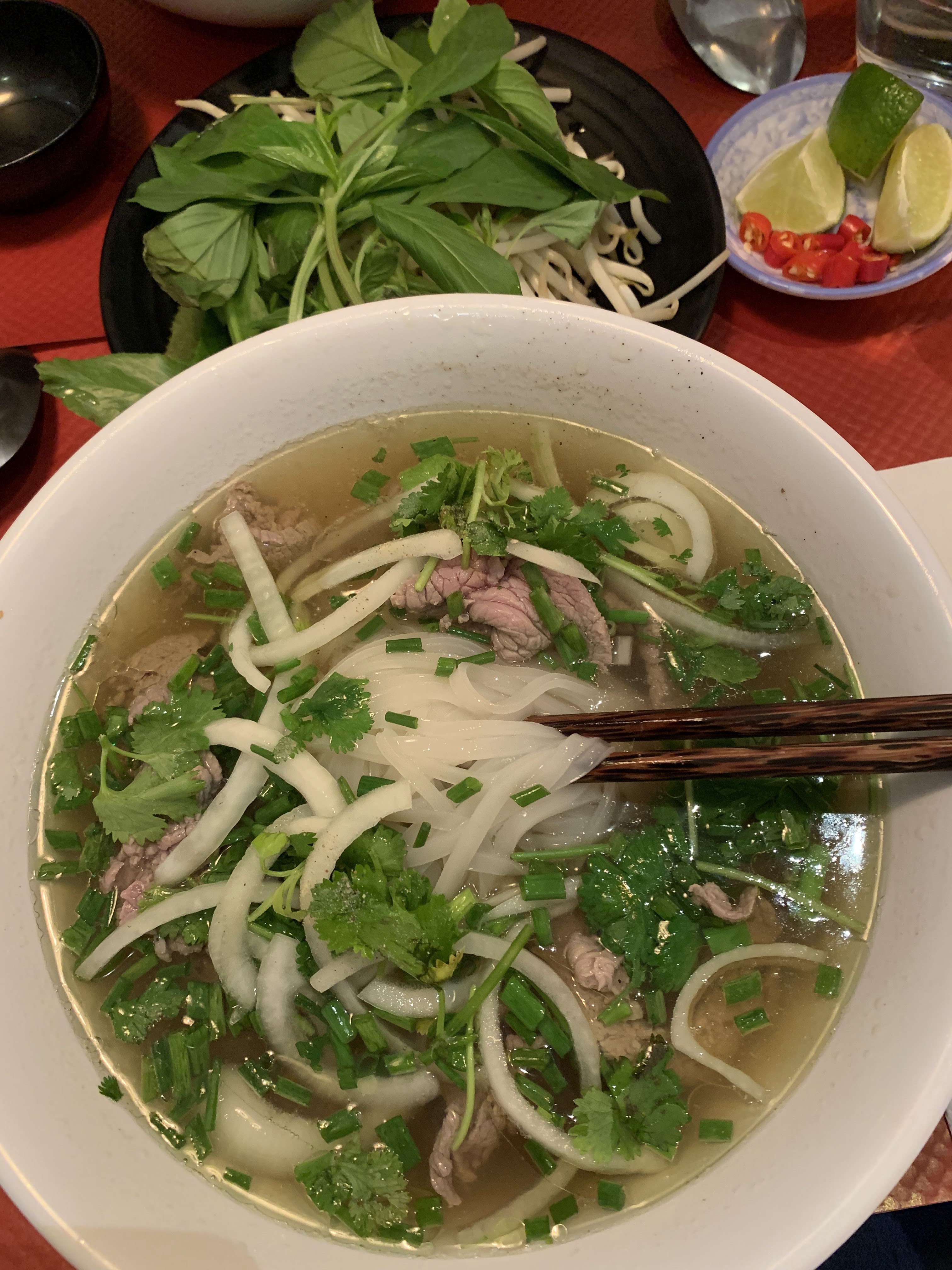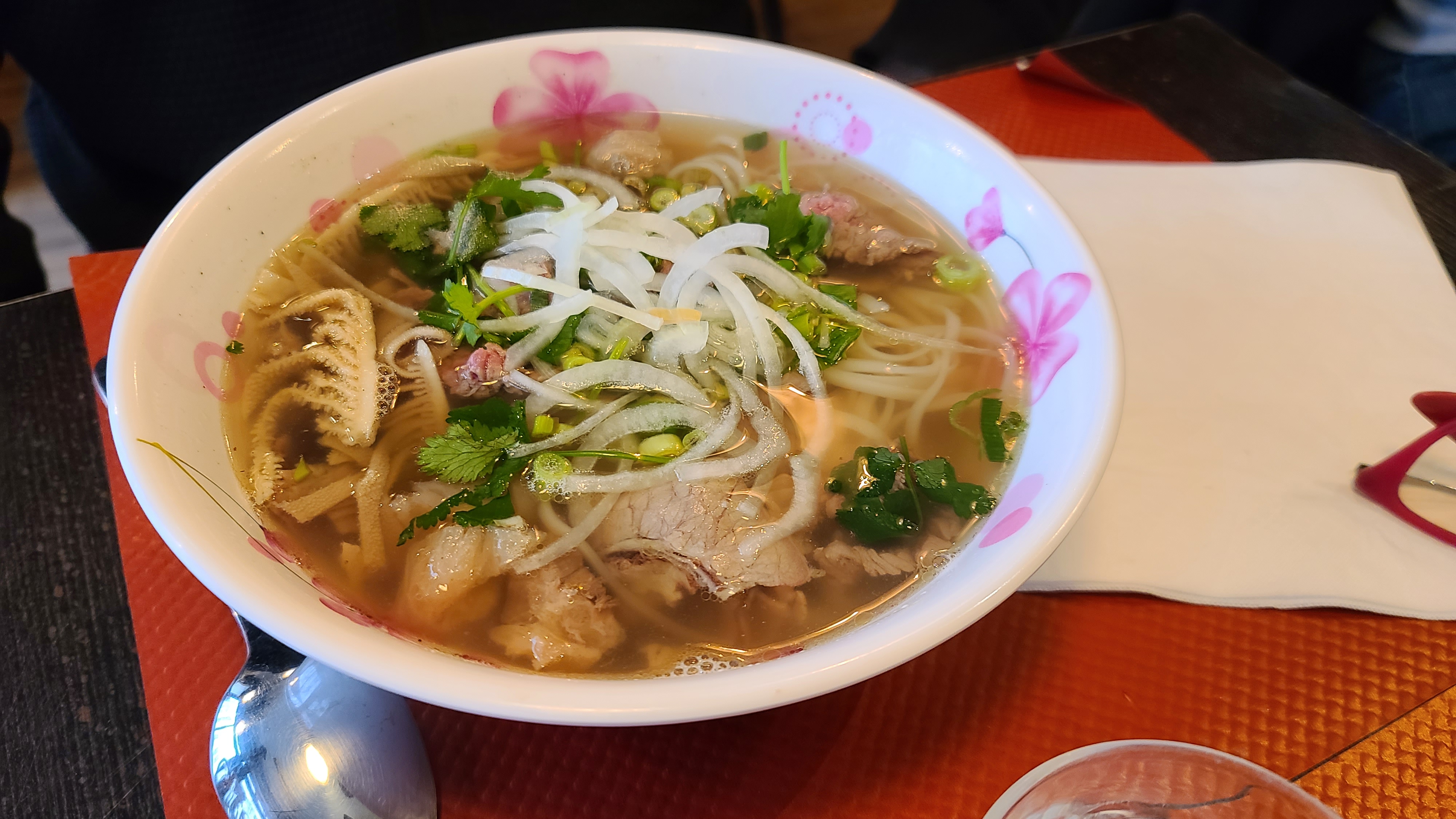Depuis des années c'est notre petit voyage en Asie. Jamais déçus! Soupe pho complète 12€50...