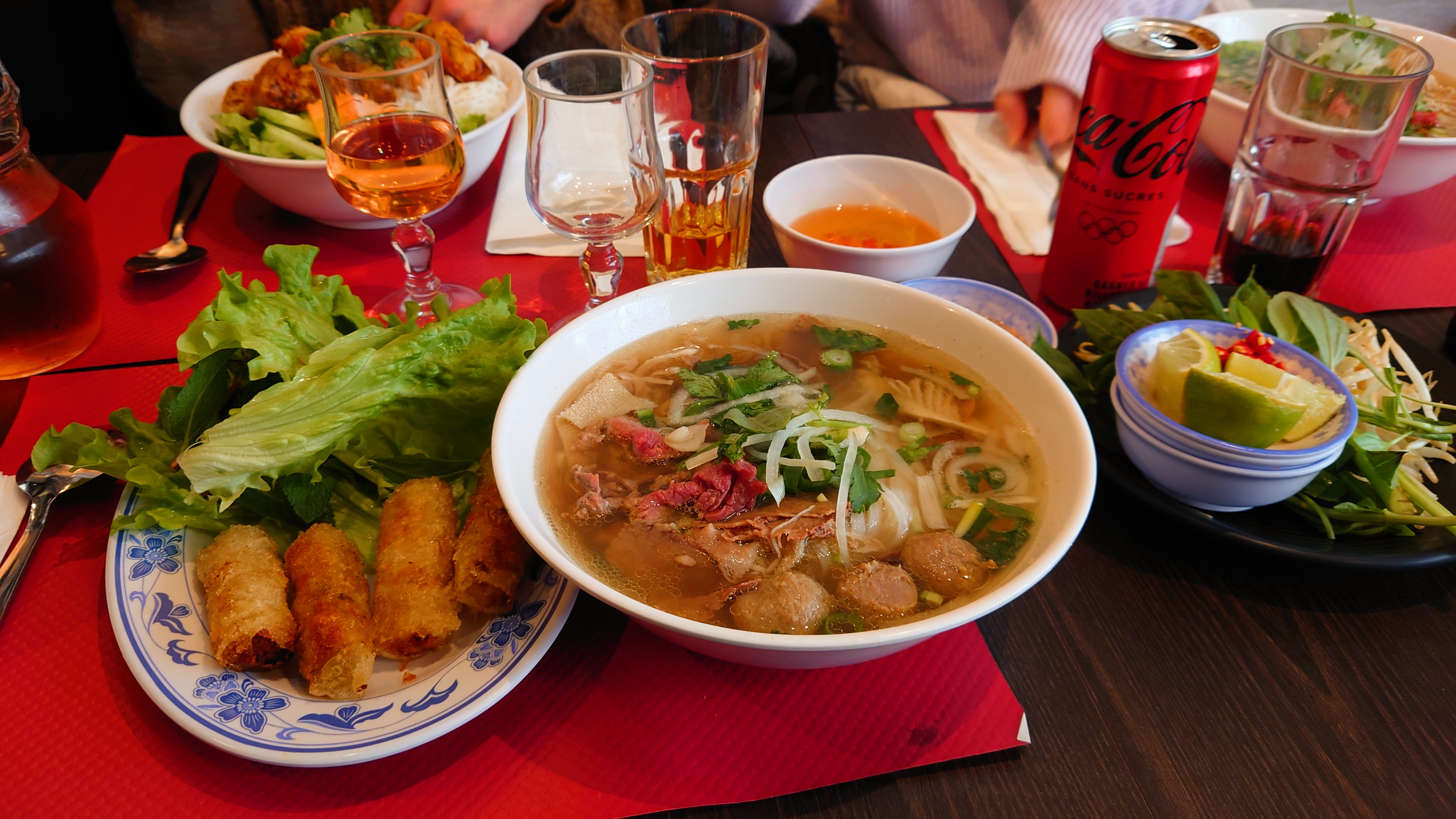 Délicieux pho, rouleaux de printemps et poitrine de porc caramélisée. Service très sympathique. Je reviens! Nous avons mangé avec un groupe de 5 amis et partagé 6 plats principaux accompagnés de quelques plats d'accompagnement. Nous dépensons 23 € par personne, un très bon prix pour cette nourriture de qualité !