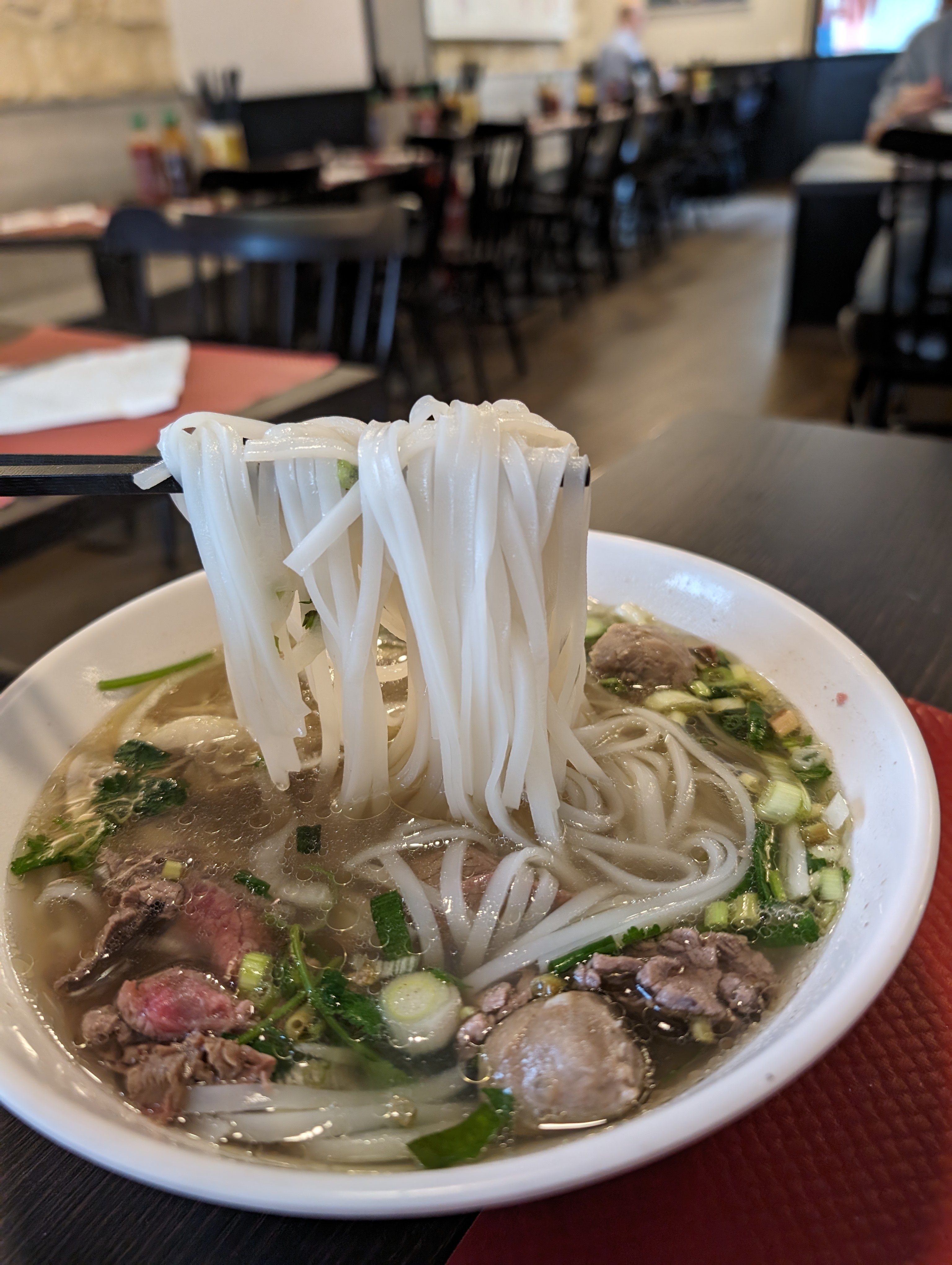 Ils m’ont réconcilié avec les pho moi qui n’aimais pas cela. Il y a beaucoup de choix. Le bouillon est incroyablement savoureux. Nous nous sommes régalés.