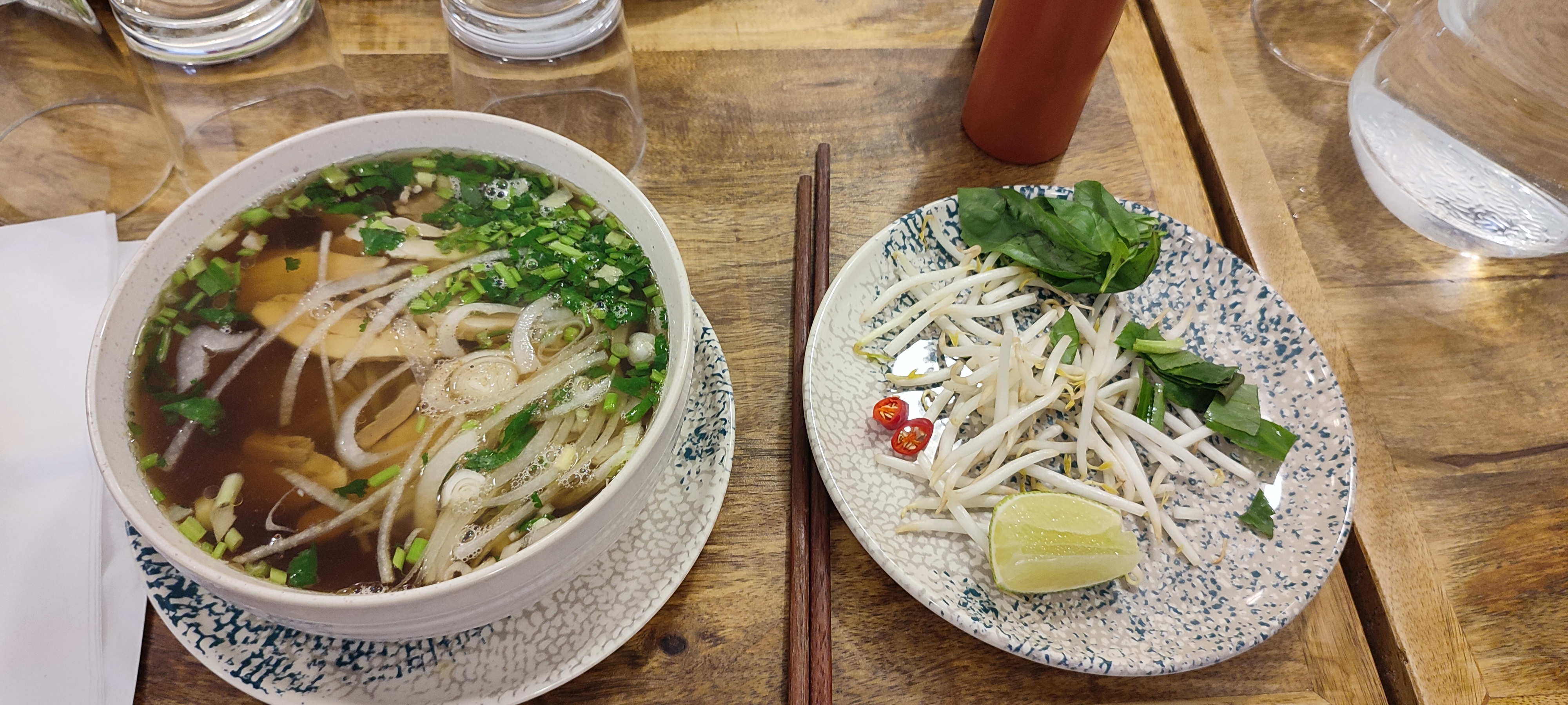 Je suis fan de la soupe pho d'un restaurant à Paris, mais faisant trop loin je n'y vais plus et ça me manque, mais j'étais toujours déçue quand j'allais ailleurs. Ici j'ai retrouvé exactement le goût que j'adorais, la soupe est copieuse et super goûteuse. Nous avons aussi goûté les nems, je n'aimais pas ça avant mais ici ils sont délicieux ! La carte propose peu de choix, qui ne sont que des spécialités Vietnamiennes, ce qui est signe de qualité dans un restaurant. J'y retournerai souvent très certainement.