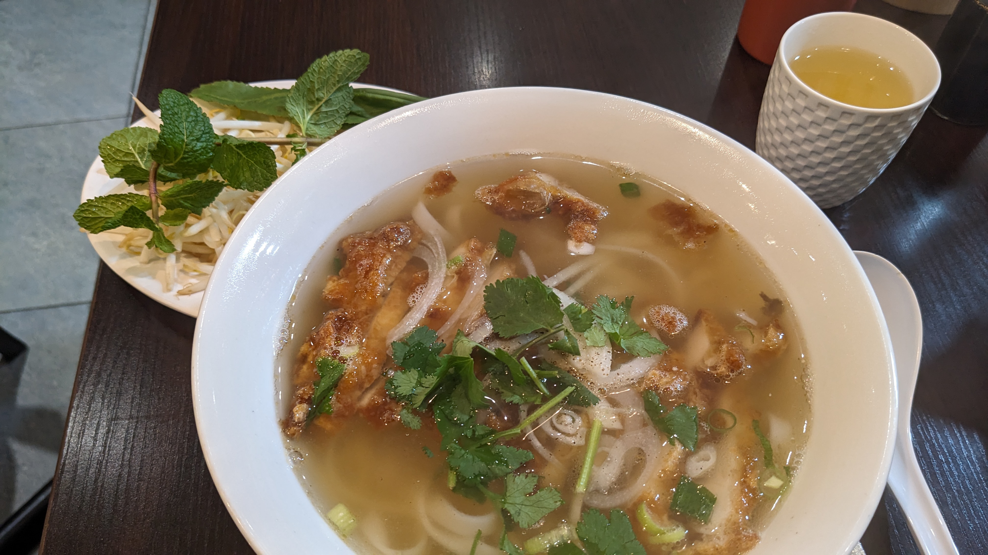 Petit endroit mignon. J'avais vraiment envie de cuisine asiatique et j'ai trouvé ce petit endroit. Peut être à emporter ou sur place ! Ils avaient beaucoup de trucs marins de la baie qui étaient réchauffés si vous le vouliez, mais nous avons opté pour le pho et je dois dire que le pho était plutôt bon. Le bouillon était léger et les nouilles et le bœuf étaient bons. Je n'ai rien essayé sur la baie marine, juste la photo