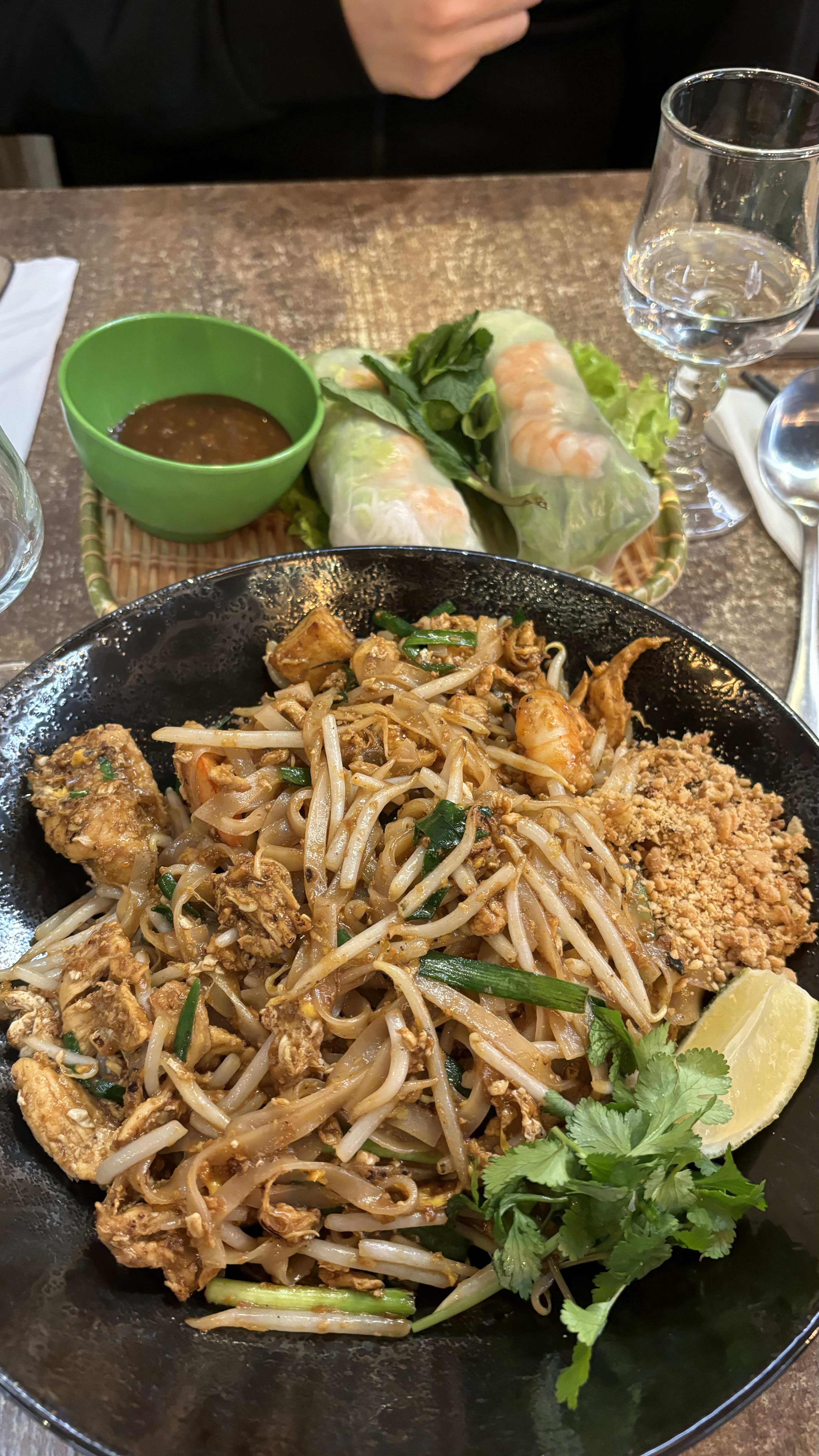 On est venu manger et cela a bien commencé, le rouleau de printemps était très bon mais malheureusement c'est la seule bonne note que je pourrais leur mette, à l'arrivée des plats, ma copine s'est retrouvé avec un plat froid, après avoir fait la remarque la serveuse l'a réchauffé au micro onde (pad Thai). Quand a moi, j'ai pris du riz au travers de porc grillé mais la viande était fade. Je n'ais pas apprécié mon repas. Dommage car cela avait bien commencé.