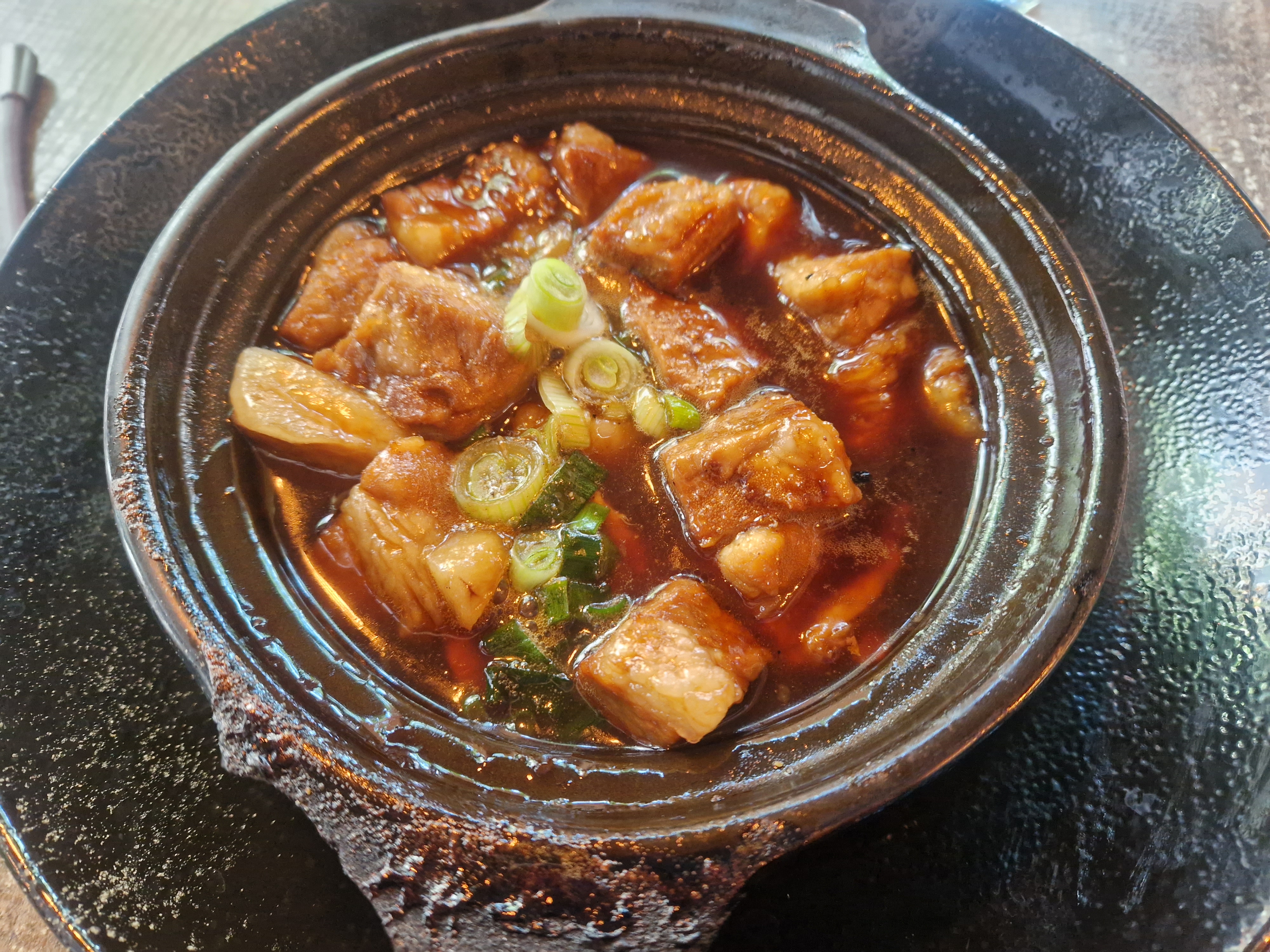 Ambiance sympa et chaleureuse qui donne envie d’y manger, seulement le principe d’un restaurant c’est de proposer de la bonne cuisine. Ce point des plus important a dû être oublié dans le business plan. On se retrouve alors avec un bon endroit pour discuter mais pas pour manger. Mon plat façon porc au caramel je l’attends toujours ! A la place j’ai pu accueillir en mon sein du gras à la vapeur d’eau, avec le minimum de « sauce » possible, me laissant avec un goût de porc réchauffé au micro onde sec que j’ai pas pu finir. Pour compenser la sécheresse de la viande on a choisi une carafe de thé glacé qui était en fait de l’earl grey trop infusé qu’on aurait oublié froid et ps glacé : La chance ! Pour résumer : lieu opportun pour un dîner avec la belle famille