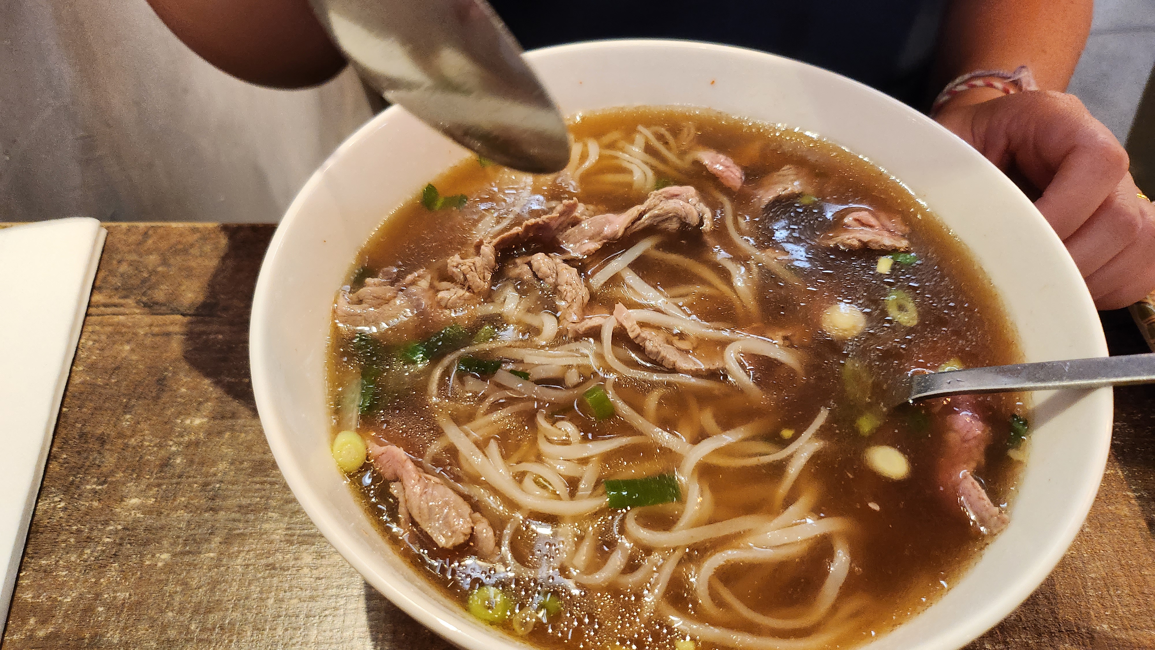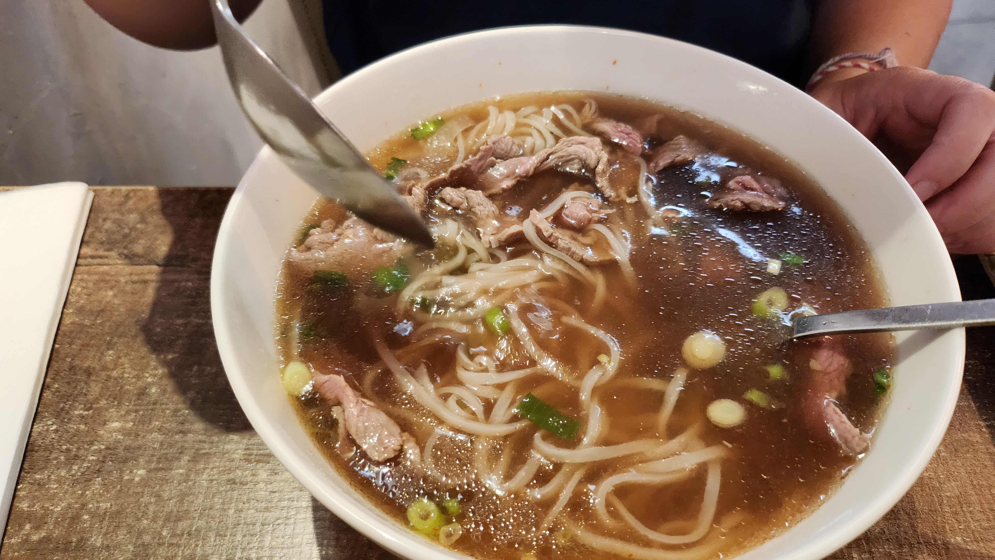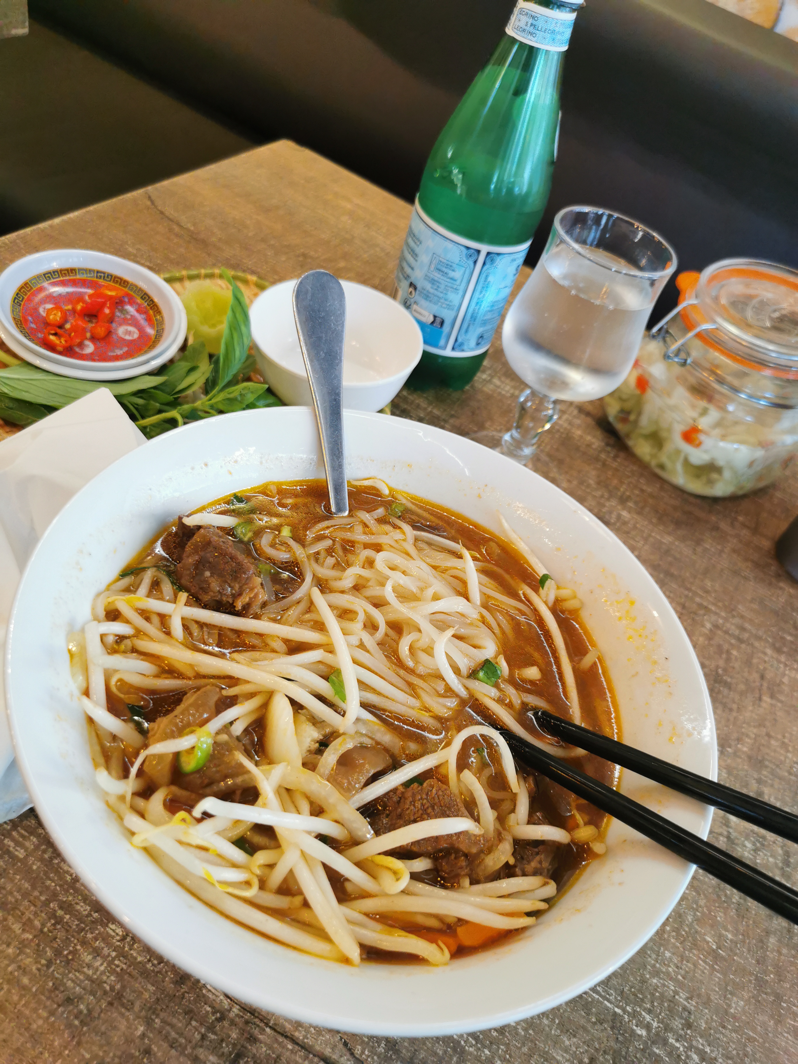 Je commente rarement. Vraiment pas bon. Viande avec 90% de gras parti à la poubelle. Bouillon sans goût, impossible à finir. Point positif : le nem mais dépenser 20€ pour au final ne manger que 3 nems, ça fait cher.