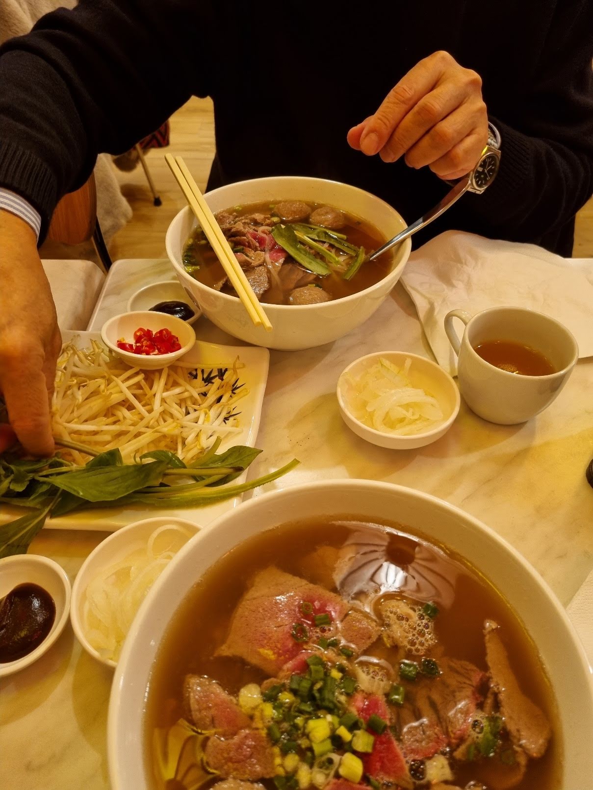 Cadre agréable et propre avec un service chaleureux et aimable, ce qui peut changer de certains concuurents. On a pris 2 pho spéciaux et on nous a offert du thé chaud, ce qui est très appréciable. Bon pho, portion un peu moindre par rapport à d'autres endroits mais on a pu finir notre bol sans se forcer. Je recommande! On reviendra pour essayer d'autres plats.