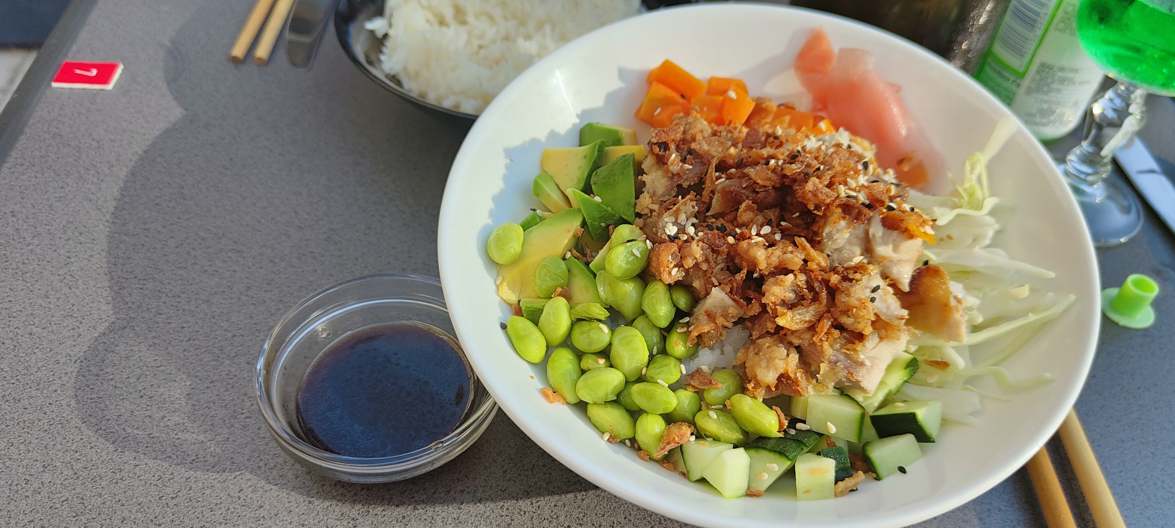 Service très sympathique. Le menu était complet et rempli de photos. Tout était à un prix très raisonnable. Le bol de poulet poke était très savoureux et copieux. Le bœuf saté était également très bon et plein de viande.