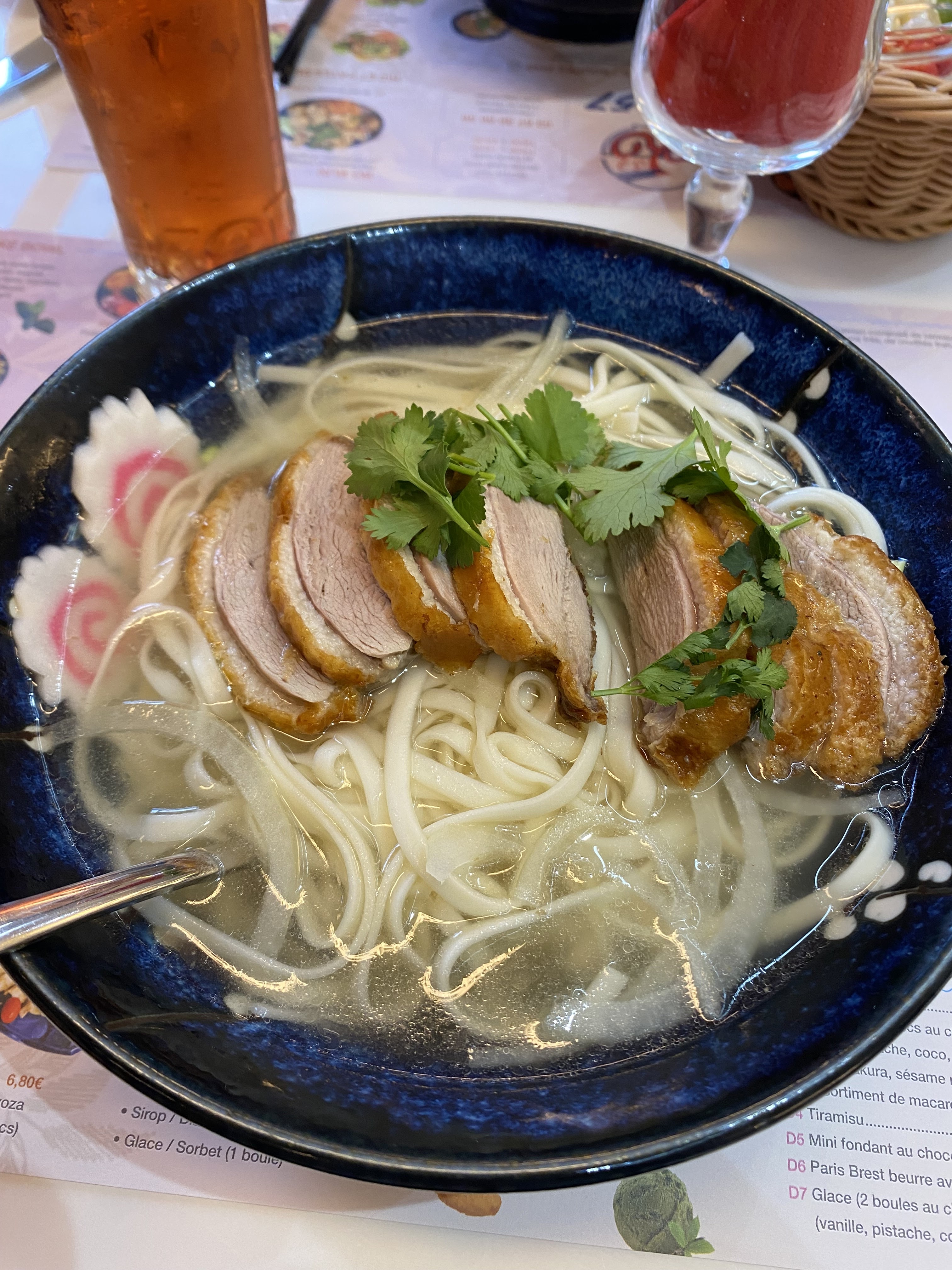 Restaurant original qui sert un peut de tout de la cuisine asiatique mais spécialement du pho. J’ai pris une soupe avec canard laqué qui était bonne avec en dessert un tiramisu. Le point fort est au niveau des quantités qui sont vraiment généreuses pour la plus part des plats. Mais le gros point faible est au niveau des photos qui ne représente pas le plats que l’on reçois ( en tout cas pas entièrement) ce qui est dommage. Appart ça le personnel est sympa et à l’écoute.