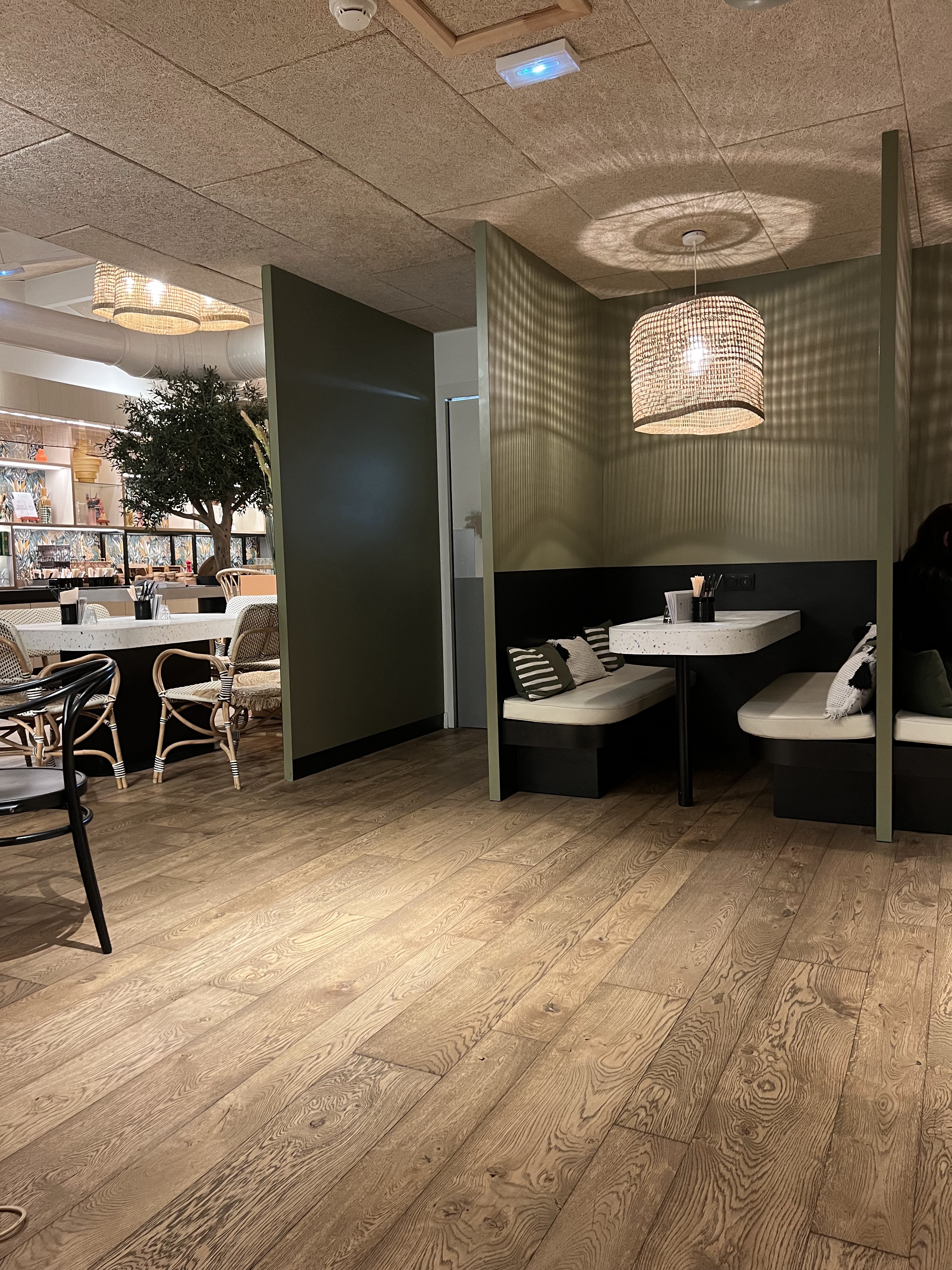 La cadre est vraiment top calme et lumineux et la disposition des tables est bien faite pour un déjeuner de travail. Cuisine simple mais bonne et serveuse aux petits soins pour nous.