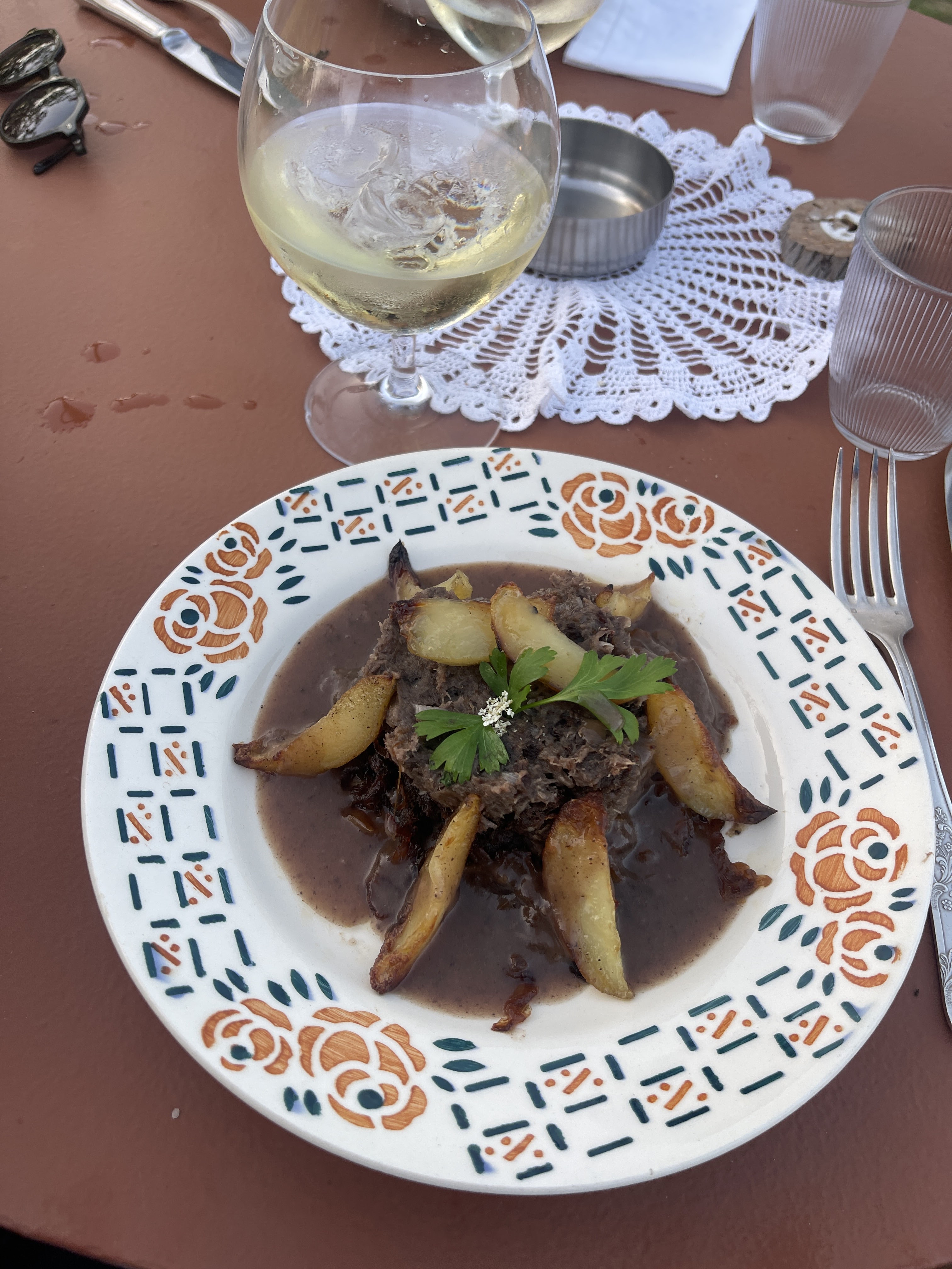 Restaurant en pleine nature. Le cadre idyllique et l'ambiance restaurant éphémère rustique ne font pas tout malheureusement. 1ere erreur d'emblée : mauvais timing entre l'apéritif et l'arrivée des plats. La carte ne comporte qu'une poignée de plats (ce qui n'est pas dérangeant en soi) qui se revendiquent cuisine de grand mère mais les quantités ne sont vraiment pas généreuses contrairement aux prix. Le service est ok, les cuissons vraiment parfaites, malheureusement ça manque parfois de goût et surtout de quantité. Les desserts ne sont pas au point, hormis celui aux figues. Pour le reste c'est trop sucré, ça manque de finesse mais il y a de l'idée et ça pourrait être très bon après quelques ajustements. Résultats : 1 étoile pour les cuissons qui sont parfaitement exécutées, 1 étoile pour le cadre et la déco.