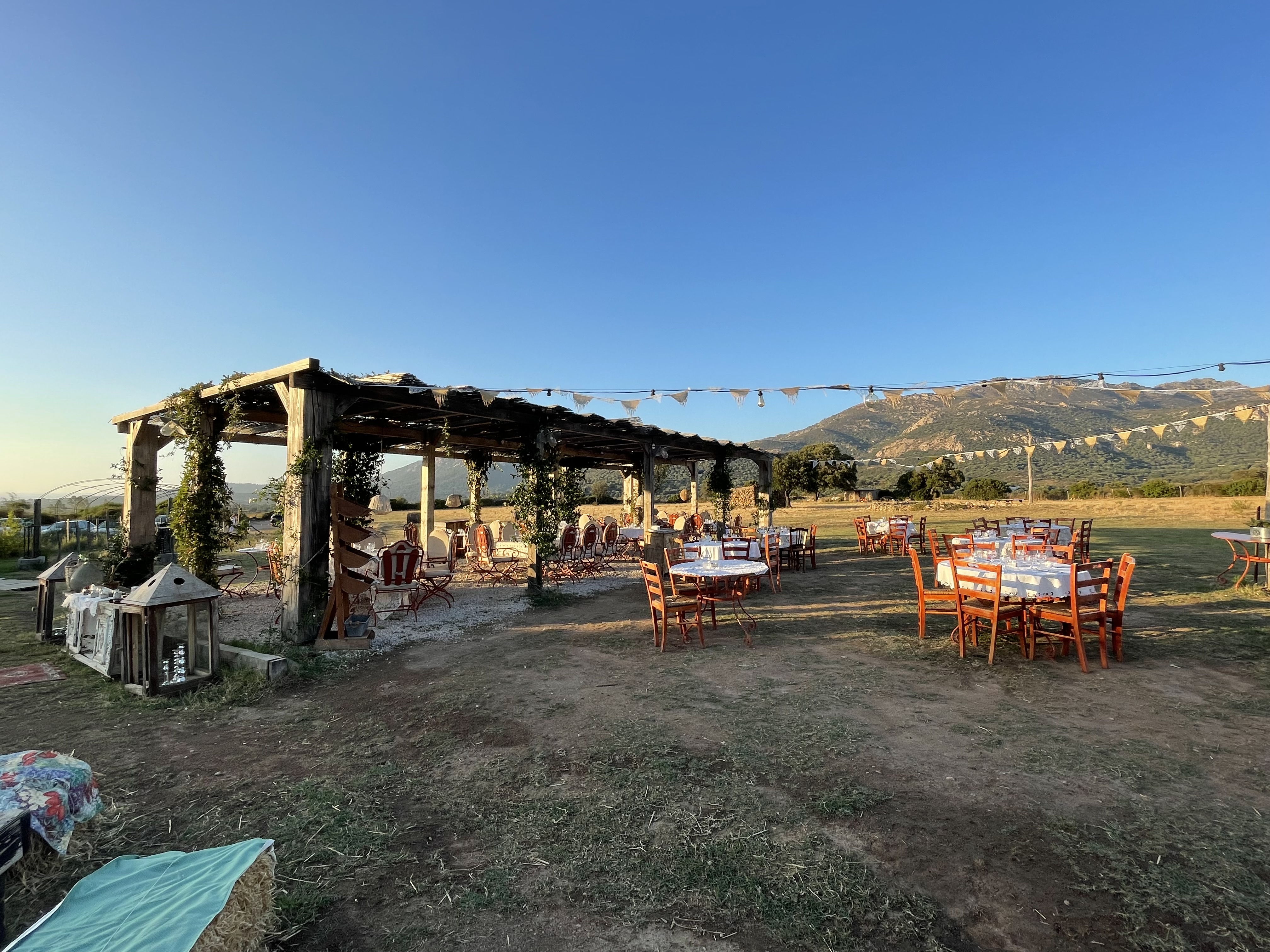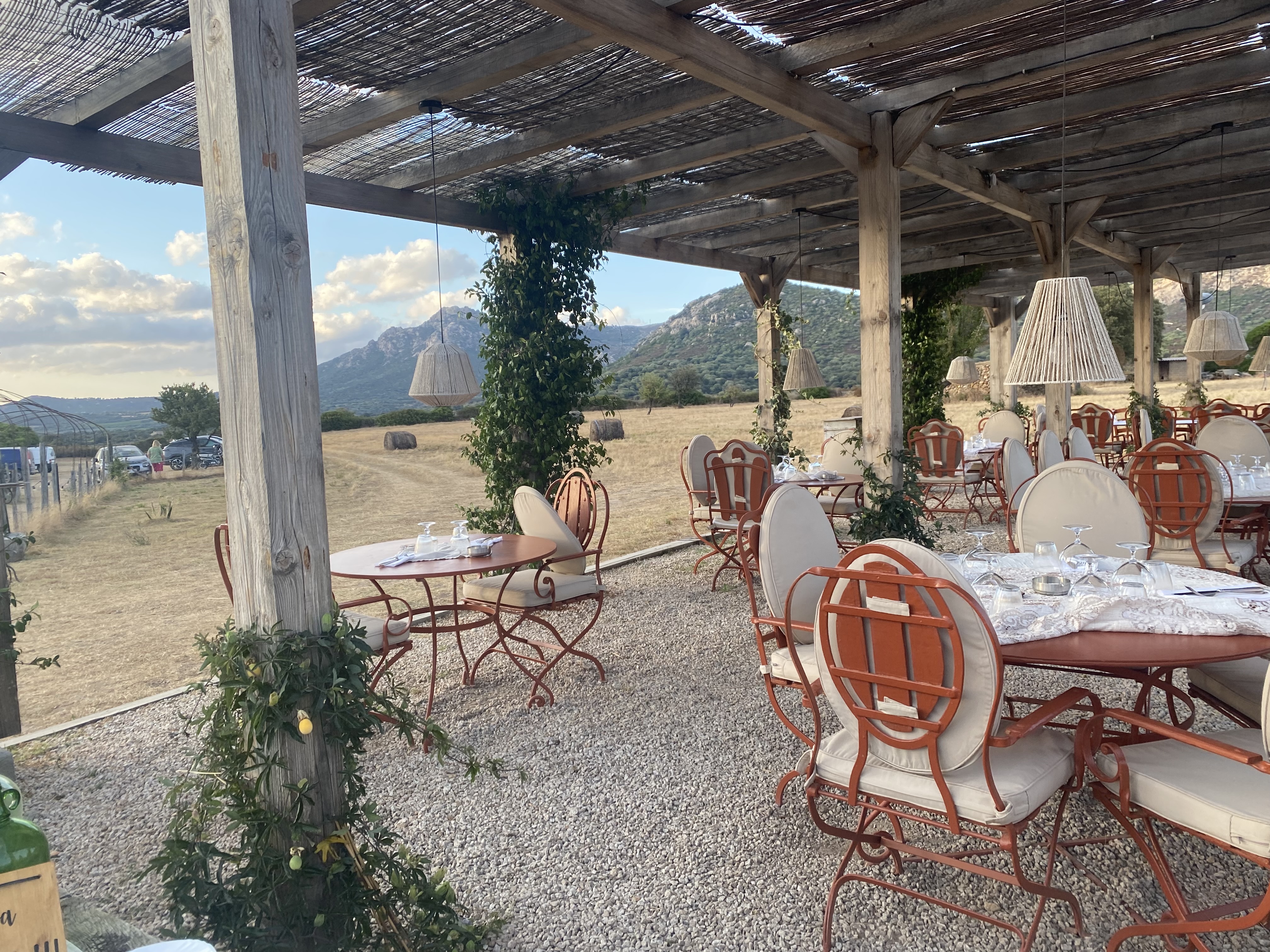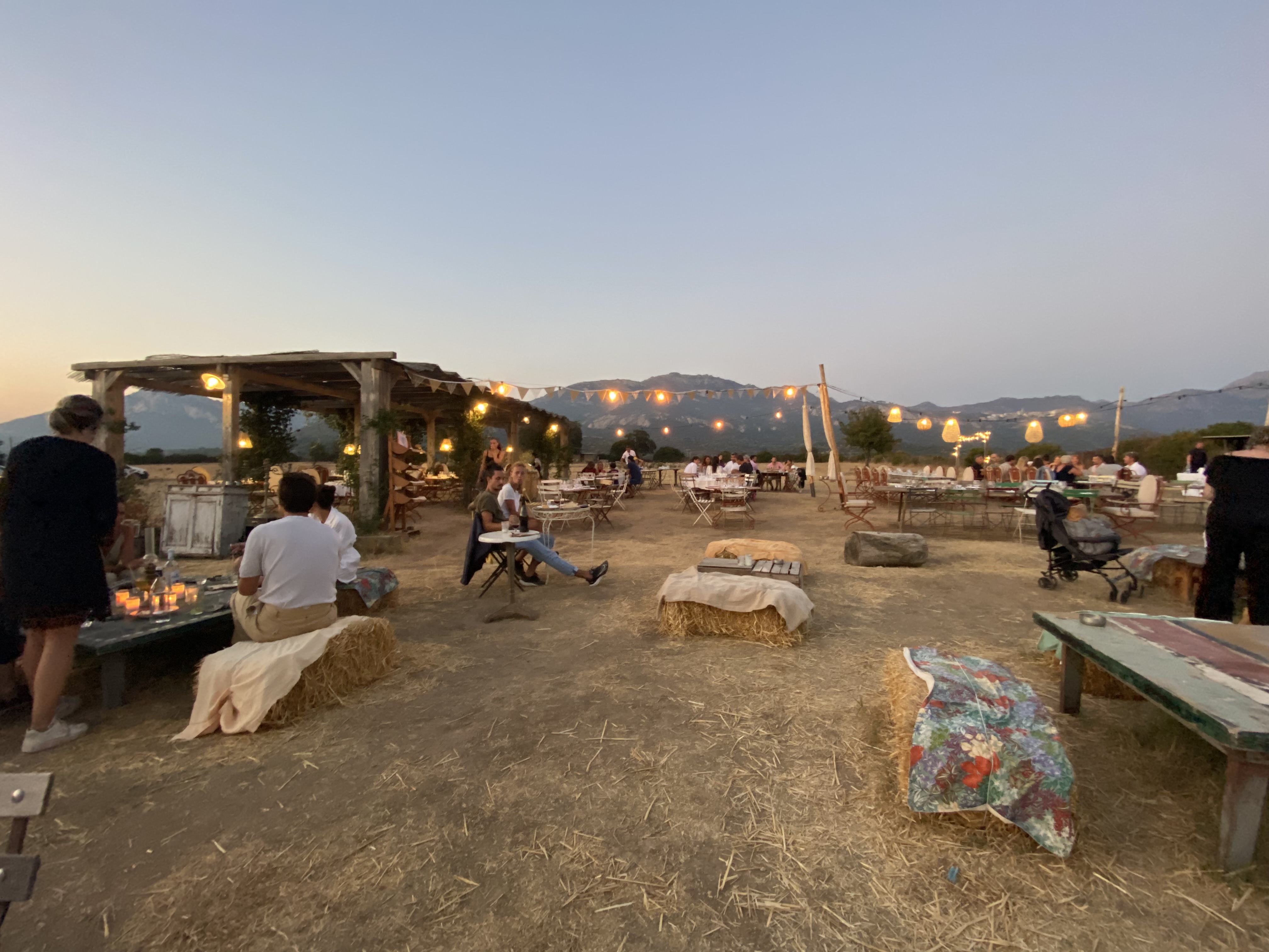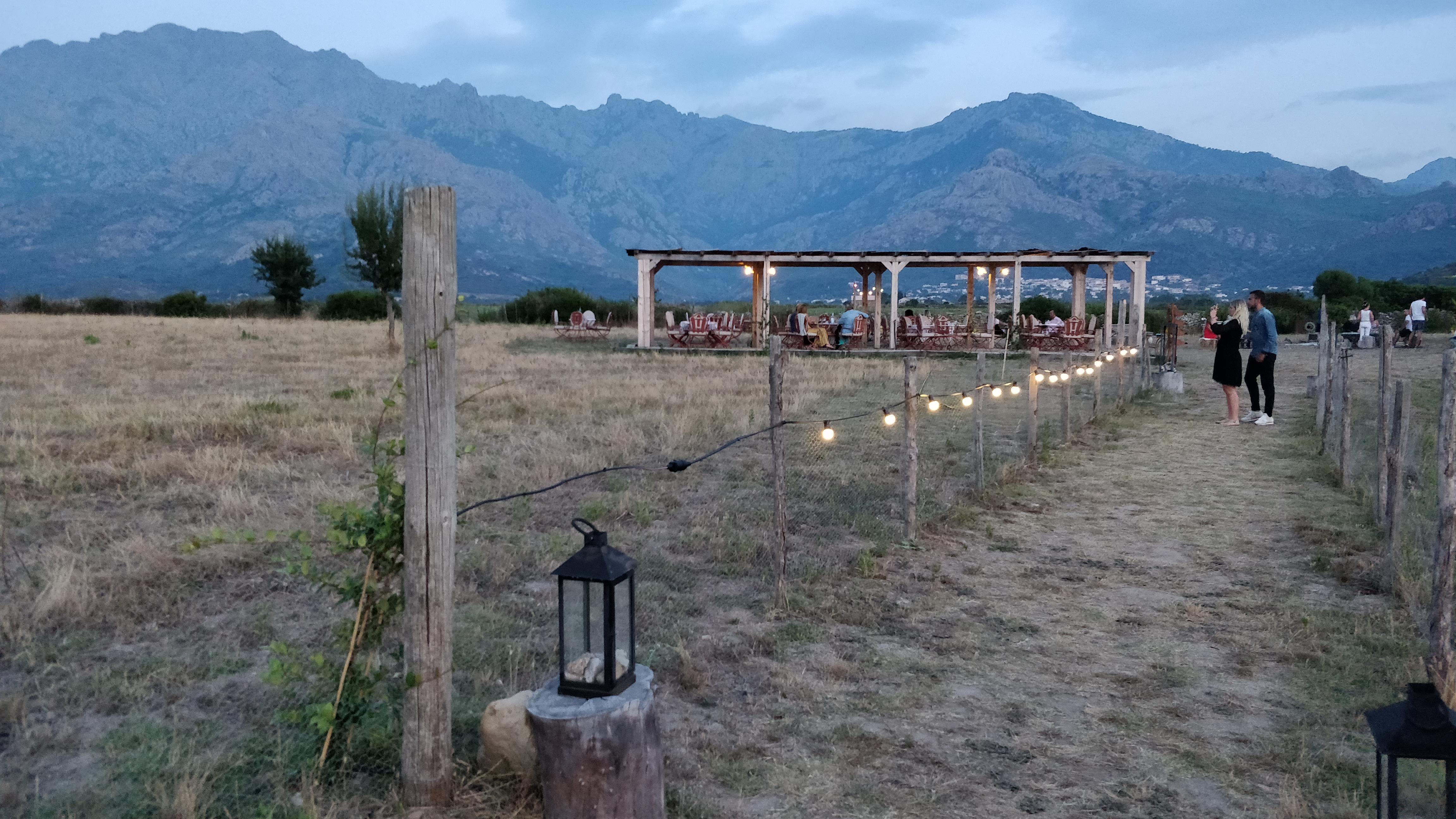 Un Cadre enchanteur avec un accueil agréable. À faire au coucher de soleil pour profiter de la splendeur avant / pendant / après 😍 On commence la soirée avec un apéro sur les bottes de paille au milieu du paysage enchanteur de Balagne. Puis on s’attable dans un joli décor bien éclairé pour profiter d’un délicieux dîner ! Ce jour là les desserts n’étaient pas top et la patronne s’est d’ailleurs excusée et ne nous les a pas fait payer, ce qui a été très appréciable et professionnel de sa part. Je retournerai tester pour ajuster ma note côté cuisine car c’était certainement un mauvais jour ce qui arrive et sachant que ça ne concernait que les desserts, les entrées partagées et plats étaient délicieux ! Merci pour ce beau moment hors du temps au calme dans la nature avec une vue ressourçante ! Un bonheur ✨ Je recommande !