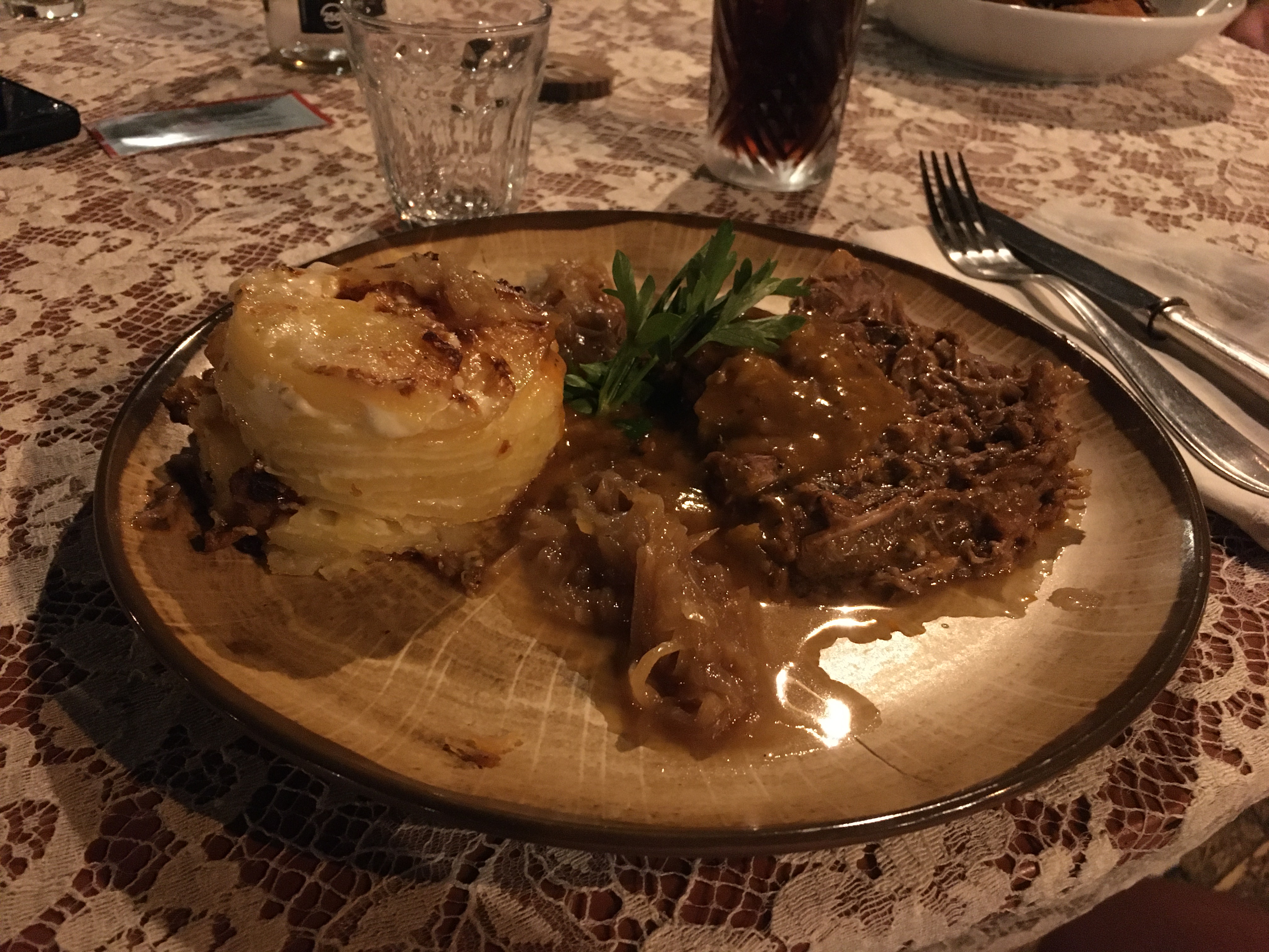 Malgré un cadre insolite, et magnifique, gâché par un Service très BOF avec des plats de viande servis froids, 4 tranches de pain pour une table de 7 personnes, une salière et une poivrière pour tout le restau!! DECEPTION...