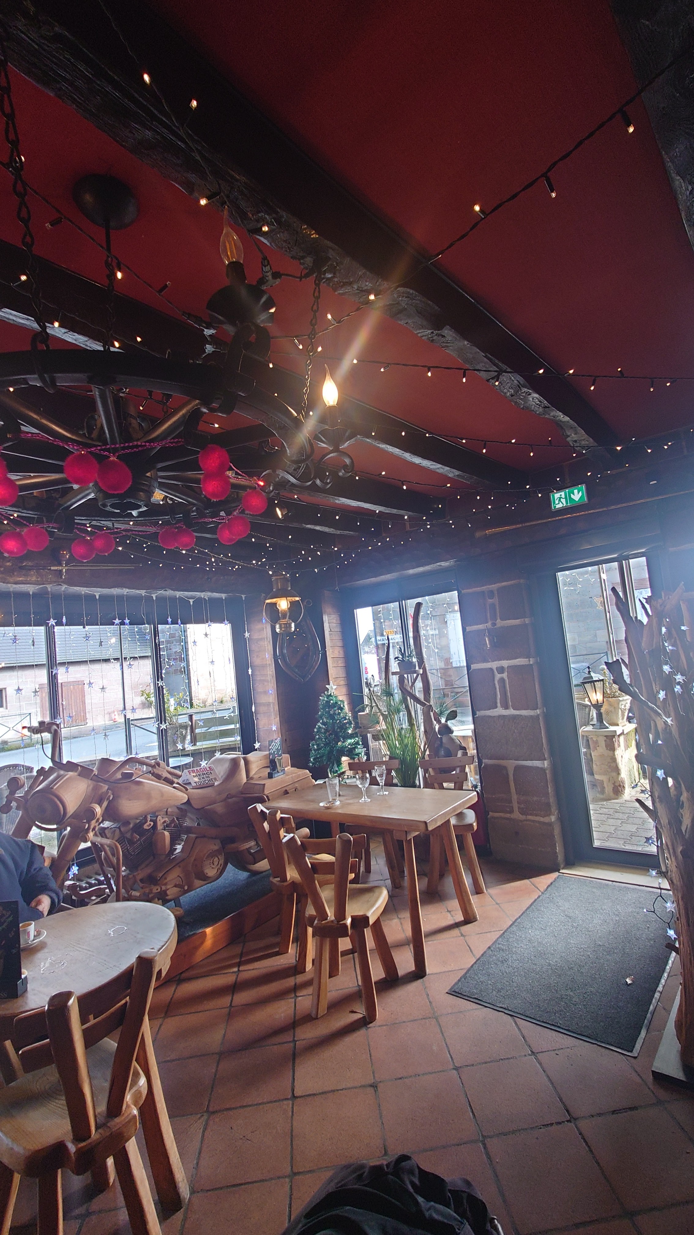 Excellent restaurant très copieux et une superbe sculpture en bois d une moto ! Personnel très aimable avec d excellents conseils sur les différents plats