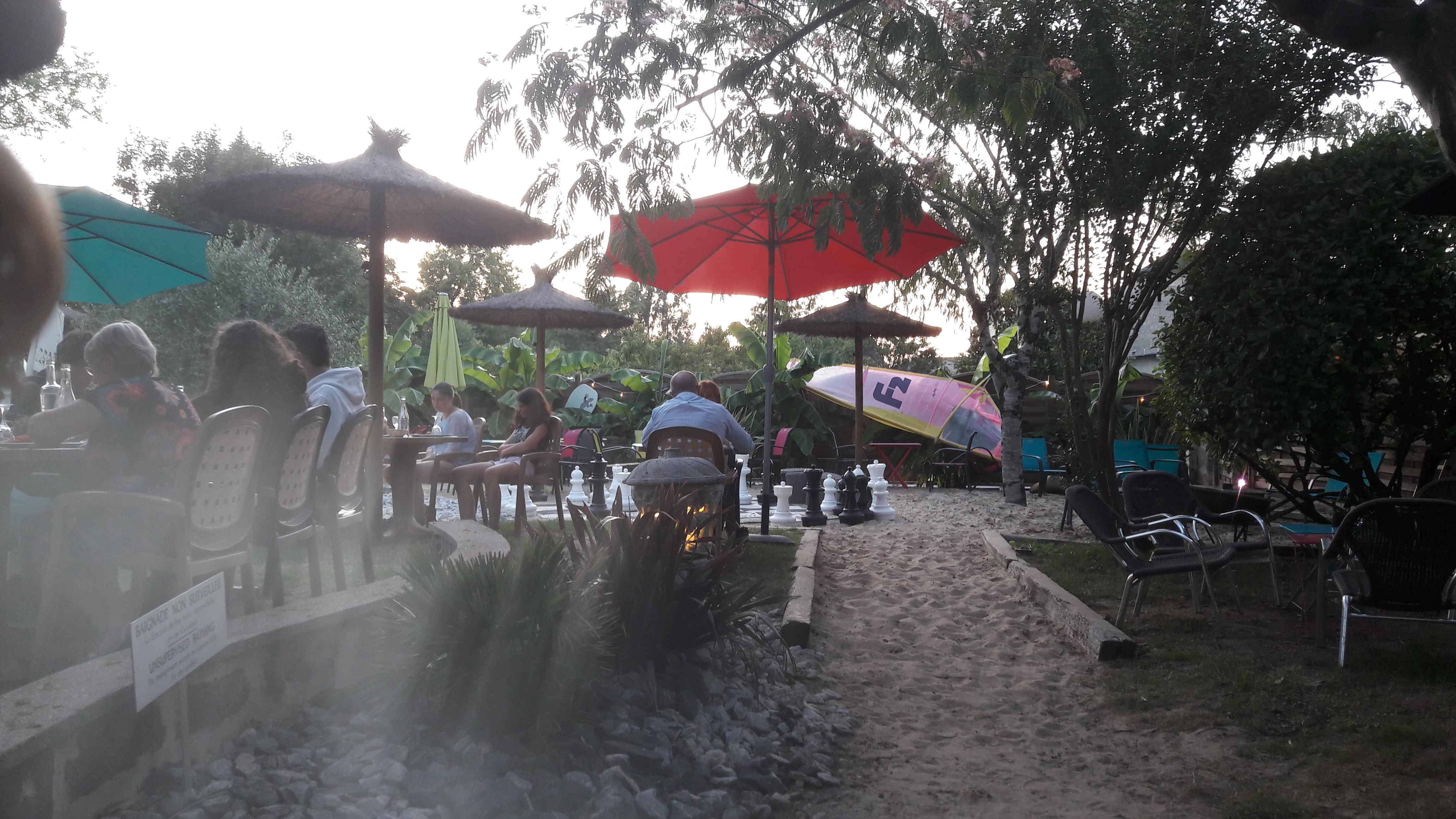 Nous avons juste bu un coup, donc pas d'avis sur la cuisine mais le lieu est top La terrasse est très bien ombragée, il y a une piscine avec ses tables basses au bord + une plage aménagée (sable+transat). On a pas l'impression d'être au bord de la route, c'est vraiment un endroit très agréable !!