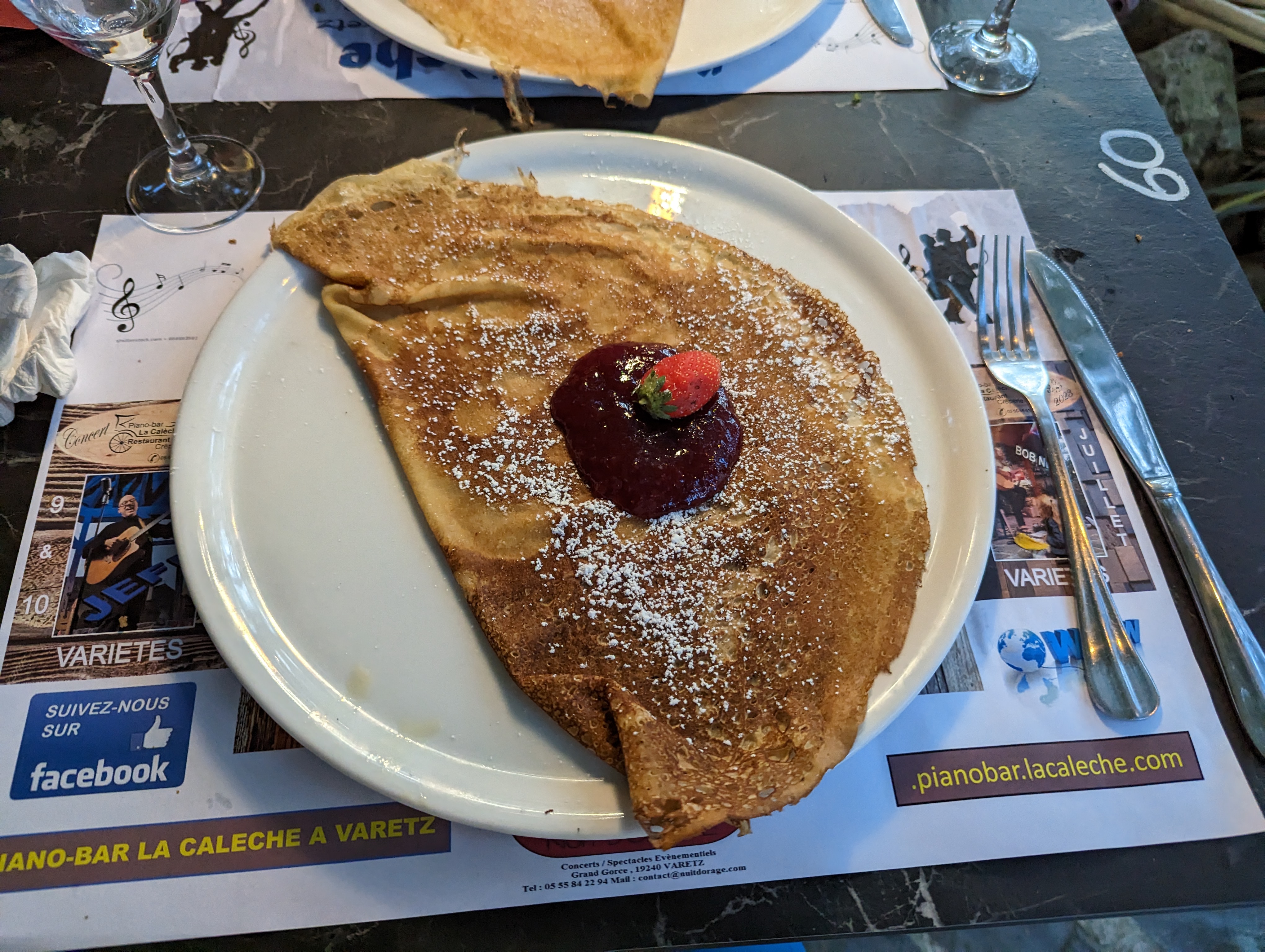 Les crêpes sont très gourmandes. Bonne ambiance. Petit bémol : il ne faut pas y aller pour papoter à table car avec la musique un peu forte on ne s entend pas. Mais très bonne soirée et bon repas.