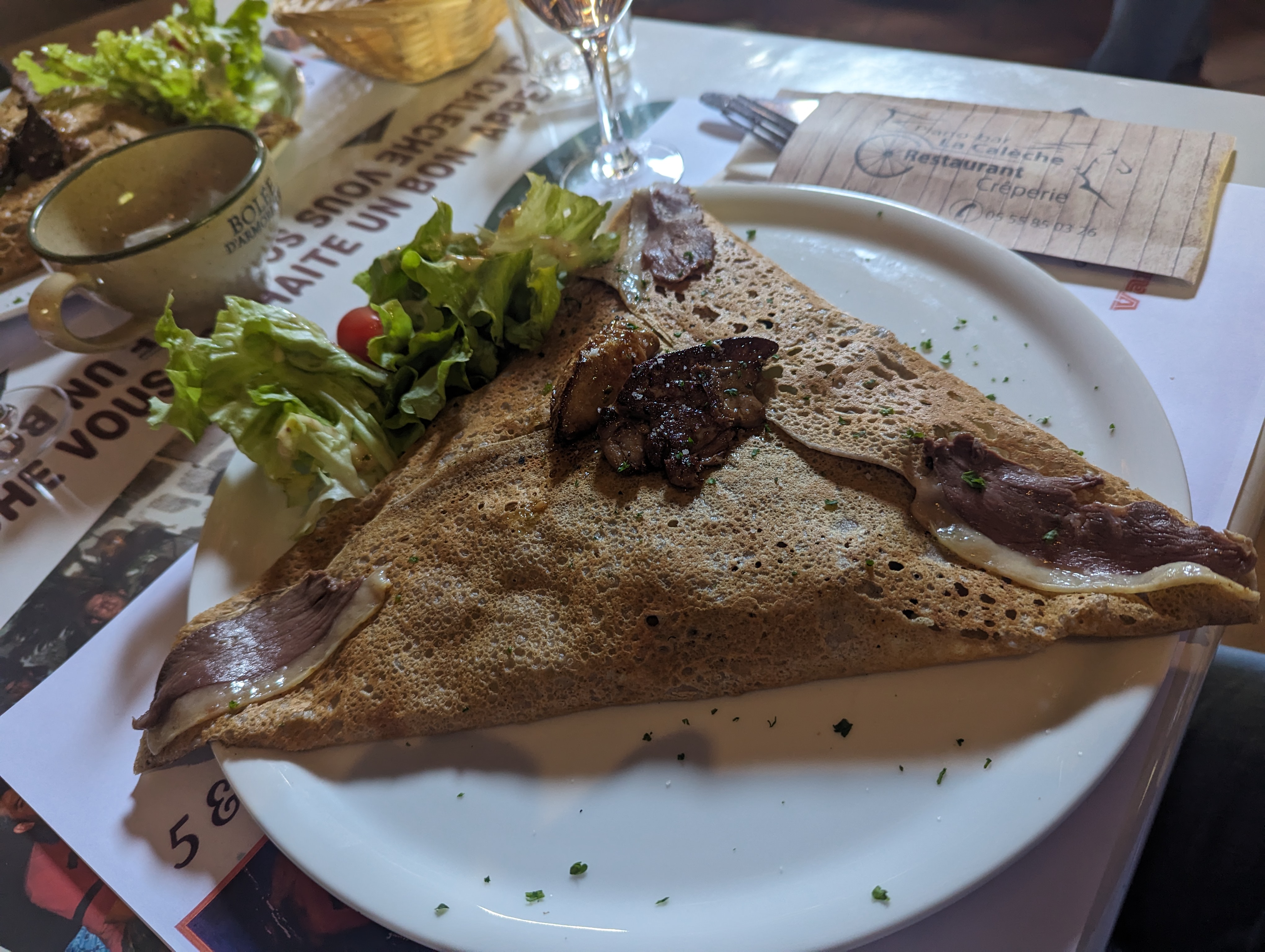 Déçu....beaucoup d attente avanr la commande pour nous dire que il n y a plus de plat et de galette à base de canard...ce qui représente la moitié de la carte.....on commande une andouillette ....oups rupture aussi mince ....rapport qualité prix déplorable à tout les niveaux....