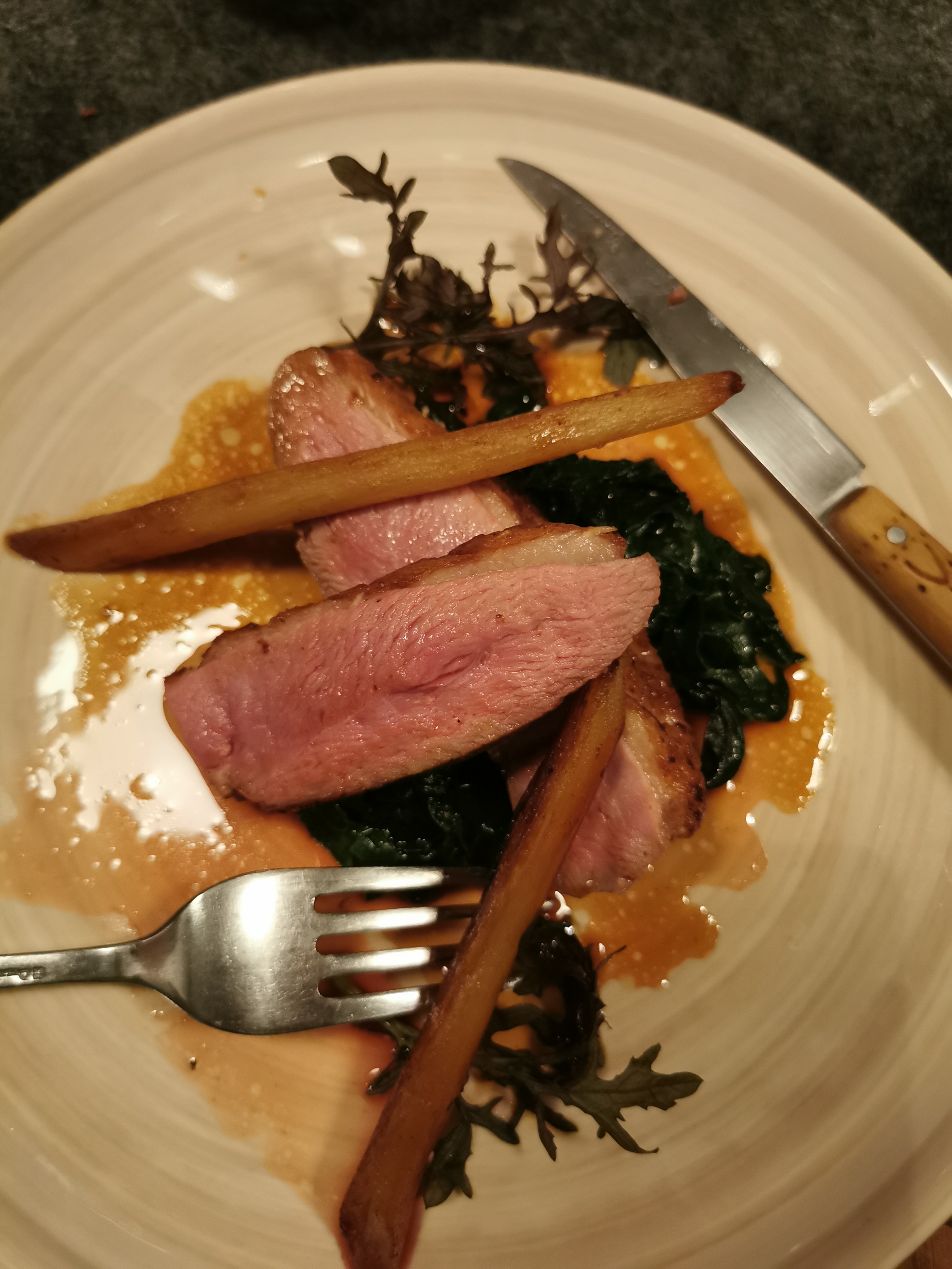 Un endroit cosy avec une ambiance chaleureuse, une excellente cuisine et un service très sympathique ! Nous avions un menu de 4 plats et c'était délicieux, surtout le canard. Ils disposent également ici d'un choix de vignes très étendu. Je le recommande totalement.
