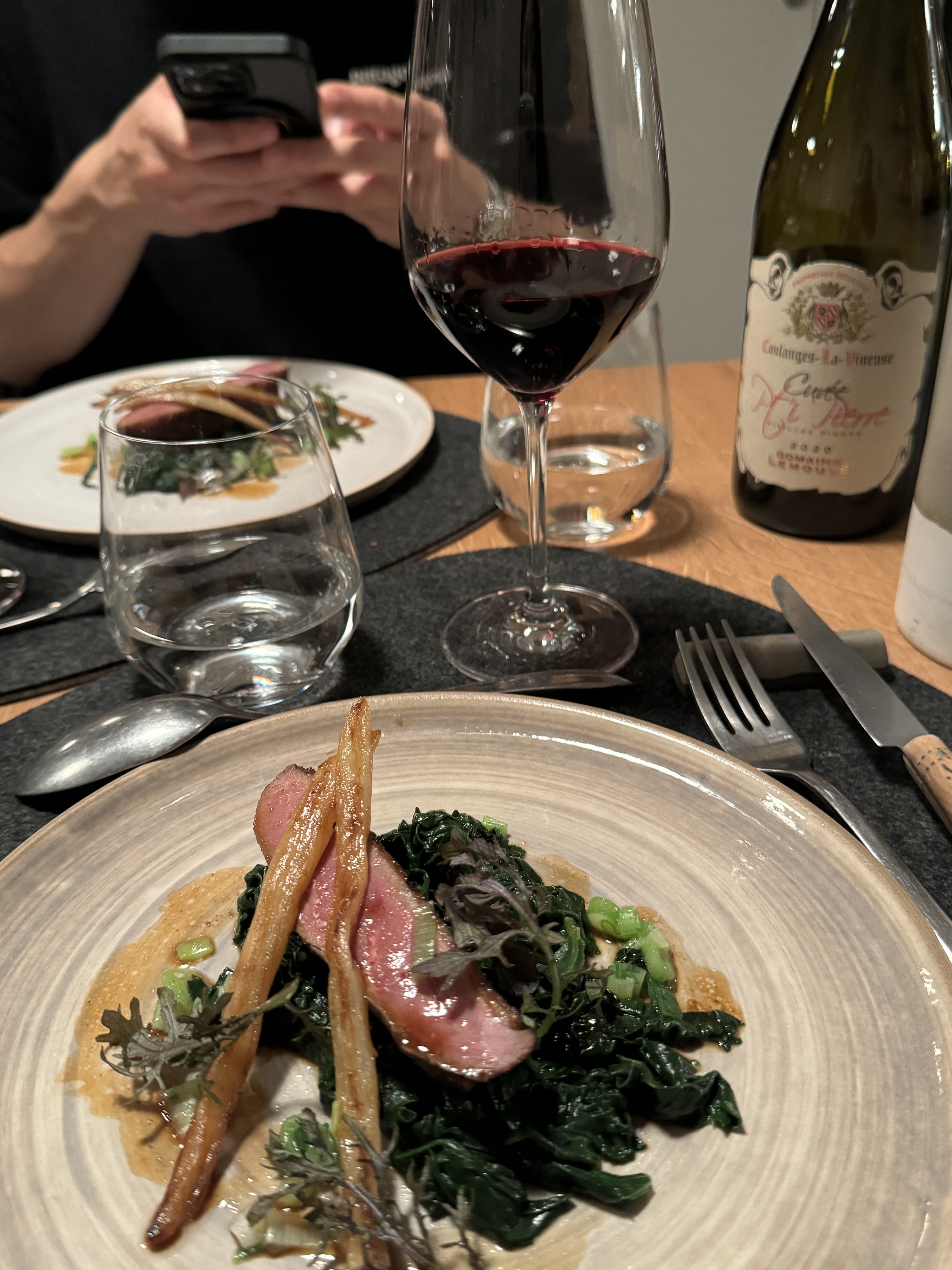 Excellent diner. Endroit où on se sente bien. Une atmosphère chaleureuse, une cuisine délicieuse, tout accompagné des vins très intéressants. Merci!