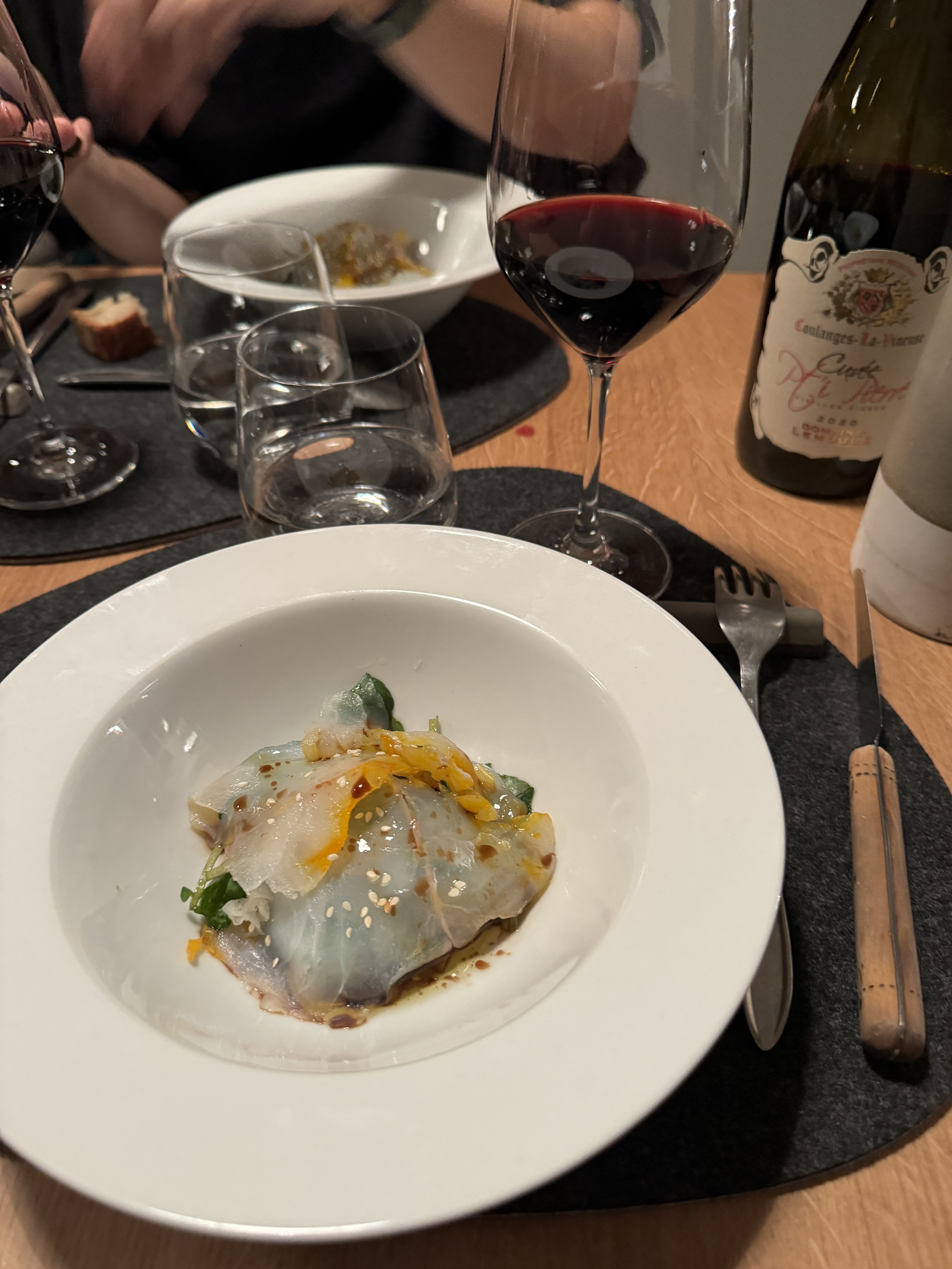Excellent repas, Eric est un vrai poète lorsqu'il parle de ses très bon vins ! Poésie dans l'assiette et le verre, what else ?