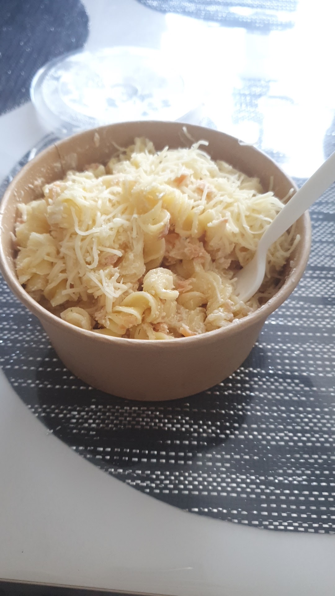 Nous avons pris des pâtes gratinées au curry. Le prix est commun et en accord à ce que l’on peut trouver ailleurs. Les pâtes sont fraîches donc c’est vrai que c’est meilleur, le goût est classique, par contre les morceaux de poulets sont immondes. Au prix du plat, on s’attend à des morceaux de blanc de poulet frais, assaisonnés et cuit sur place. Rien de tout ça, ce sont des allumettes déjà cuites et sans goût que l’on trouve dans les grandes surfaces …