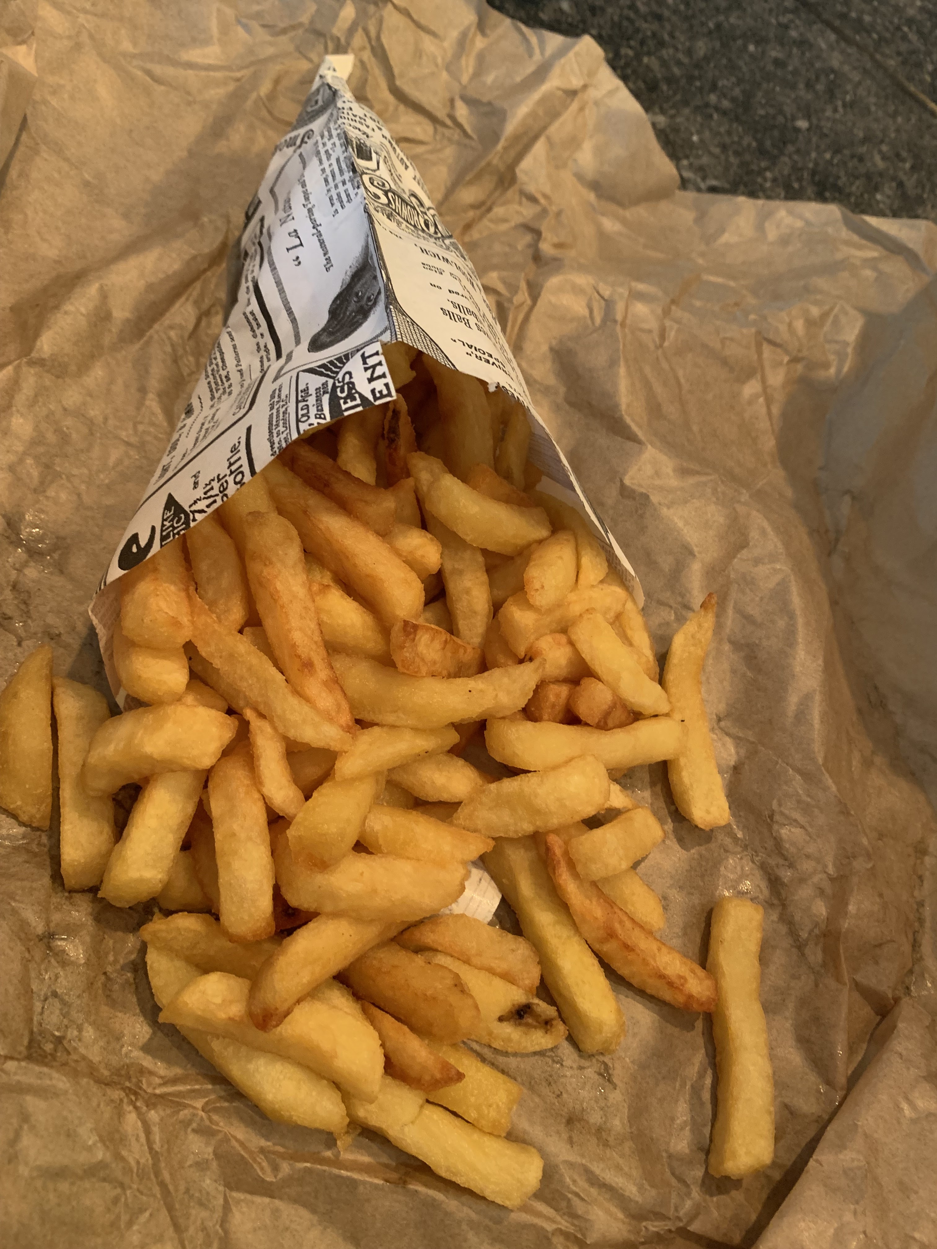 Que dire ?? Frites surgelés, j'ai eu du mal à trouver ma fricadelle sous les frites. Bref je déconseille