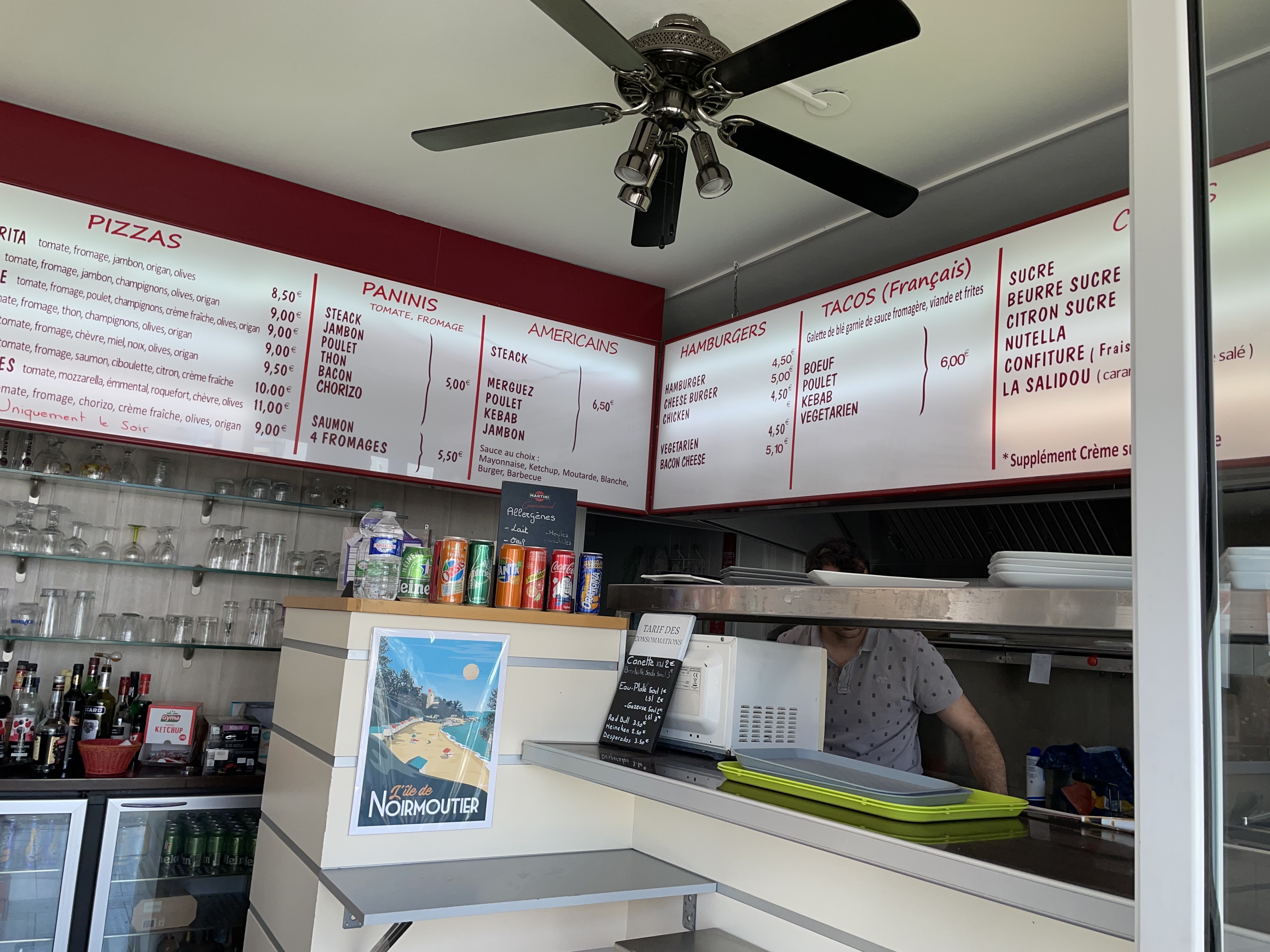 Fin juin 2020. Repas à prix normaux et même démocratiques pour une station balnéaire. C'est bon. Mon ado autiste y a mangé toute son assiette ! Hamburger - frites. Service très à l'écoute. Kebab excellent avec frites. Pour les petits budgets, on y sert à volonté une bouteille d'eau plate (robinet). Situation hyper centre, près de tous les magasins et autres restos (pharmacie, vêtements, objets de la mer et touristiques). Tout près du port d'embarcation pour l'île d'Yeu et près du pont qui mène à Noirmoutier-en-l'Ile.