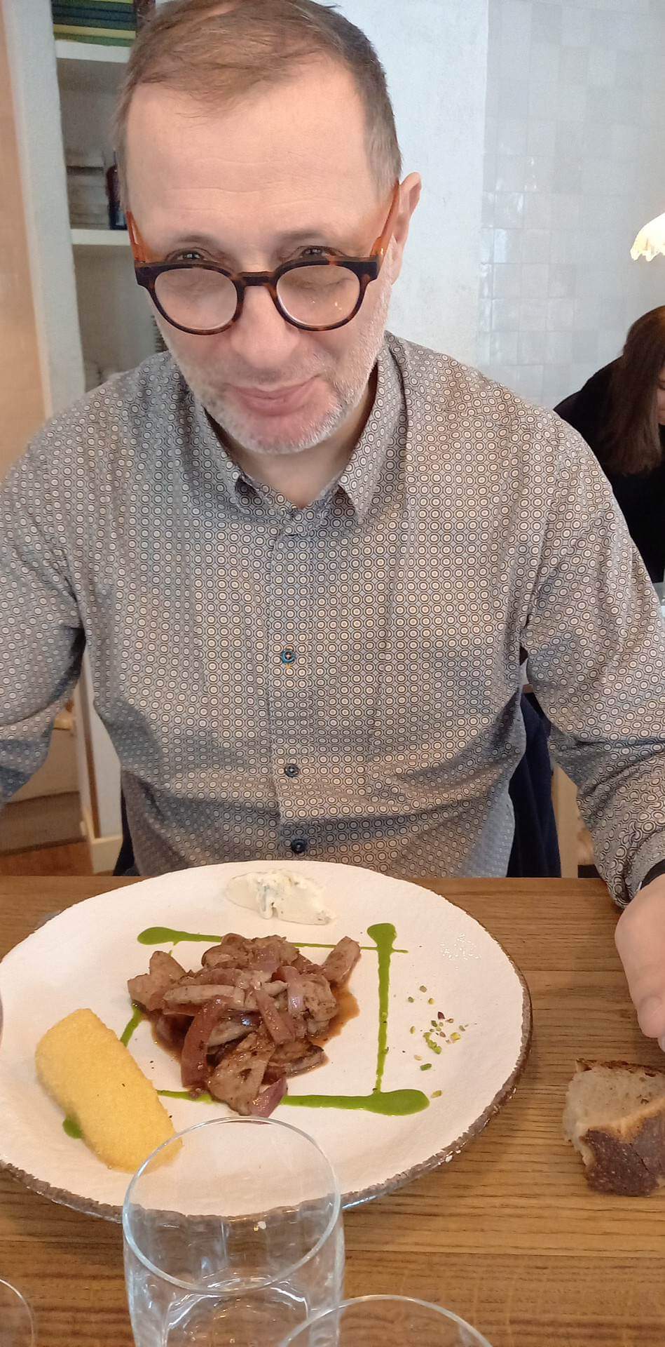 Je n’avais pas faim et même si je ne mange pas et mon ami n’a mangé que des légumes et du dessert, je peux dire que c’est l’un des meilleurs endroits de Paris ! Ambiance chaleureuse et élégante, service fantastique où vous vous sentez bien accueilli, produits frais, pain délicieux et bon vin.