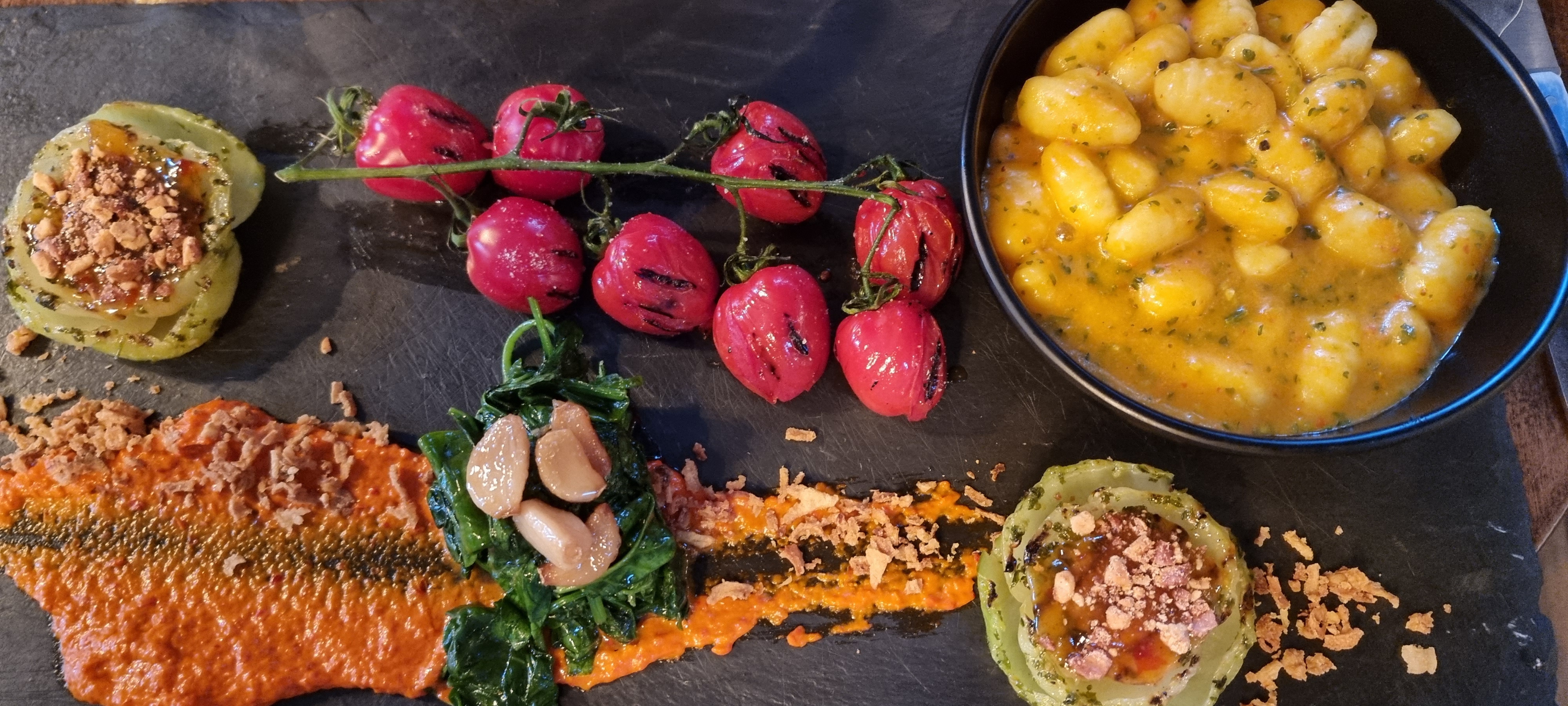 Originalité des plats très belles assiettes colorées franchement ne changez rien félicitations au cuisto et pour accueil