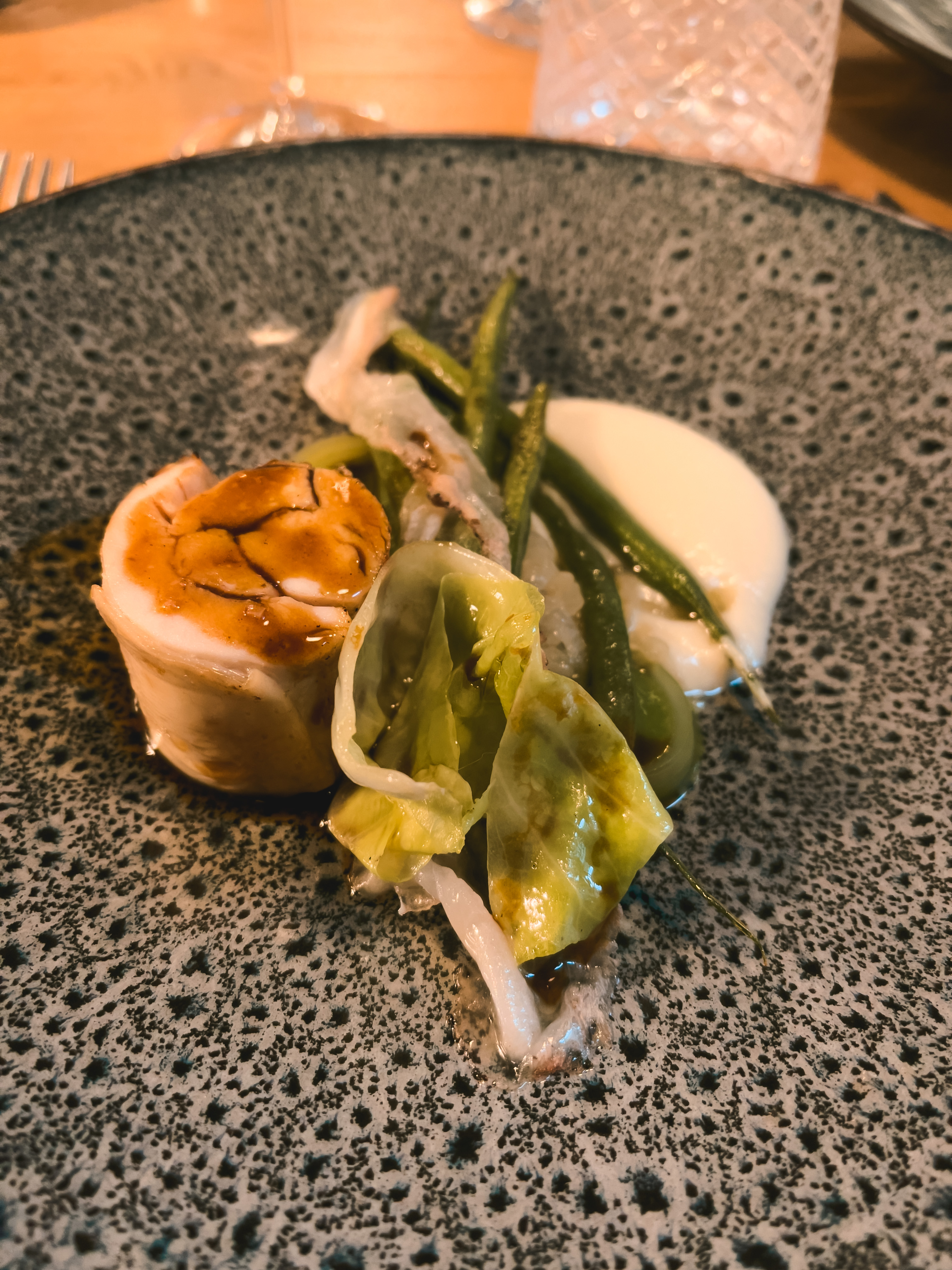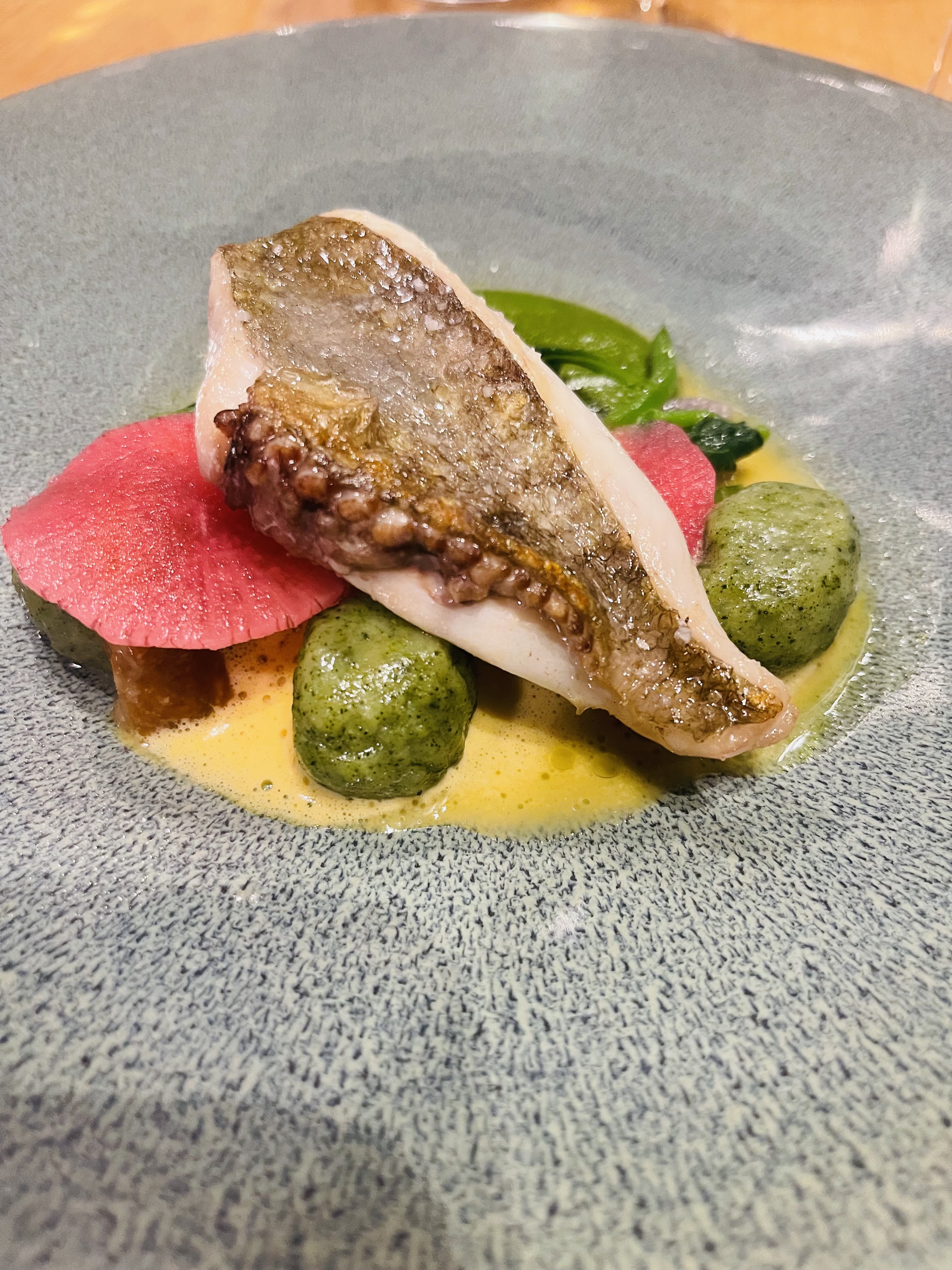 Très bonne cuisine sophistiquée - accord plat/vin très bien - juste un peu lent et musique d’ambiance totalement inadaptée à tant de raffinement