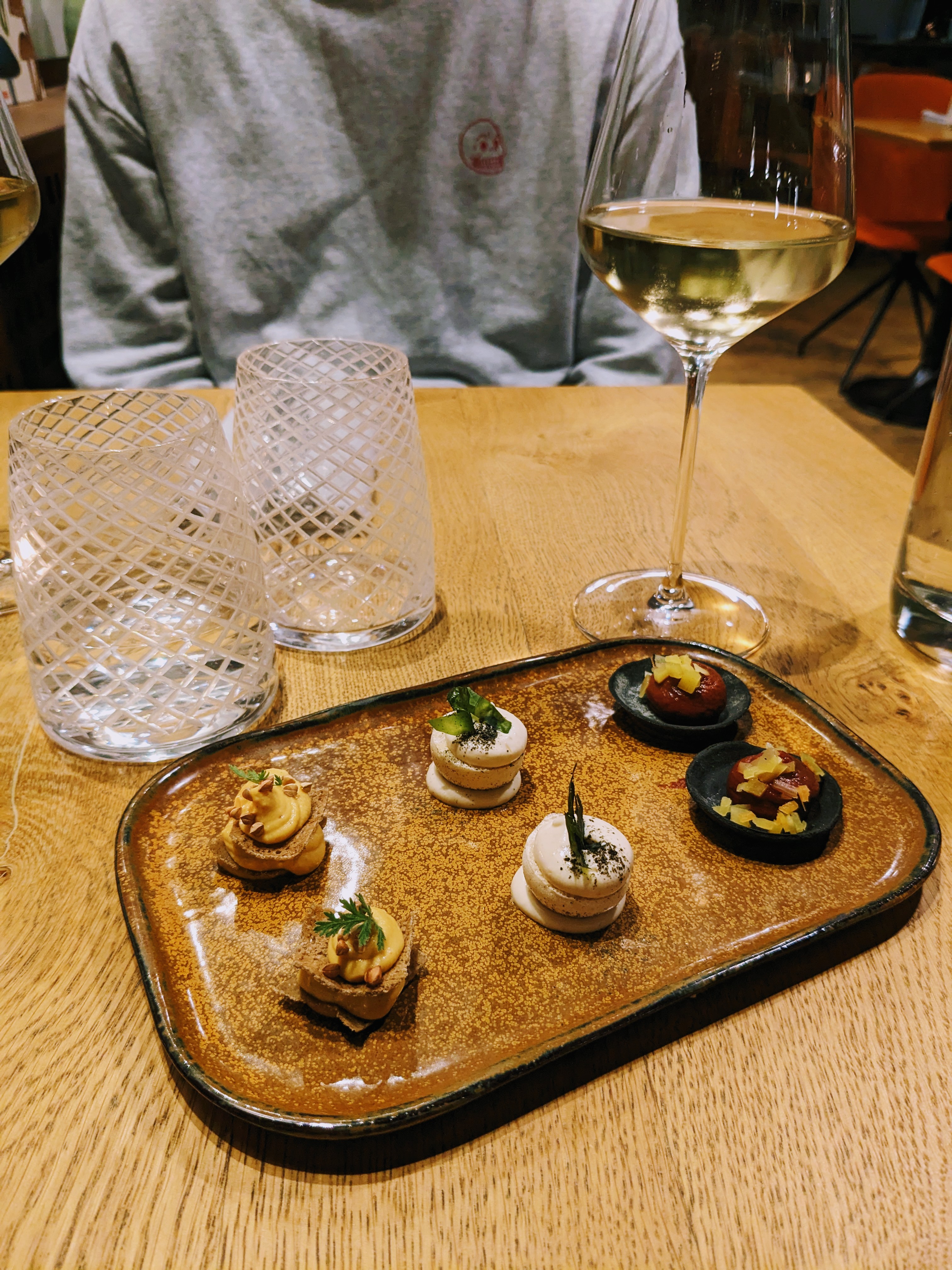 Comment ne pas kiffer cette expérience gustative geniale ? Un des rares restaurant où le vin est au top et étonnant ... l accord mets et vins est à prendre absolument avec le menu ... des plats très délicats avec quelques goûts en dehors des sentiers battus ... j ai beacoup aimé etre emmèné dans cette aventure par tout le personnel. L ambiance est chaleureuse duveteuse