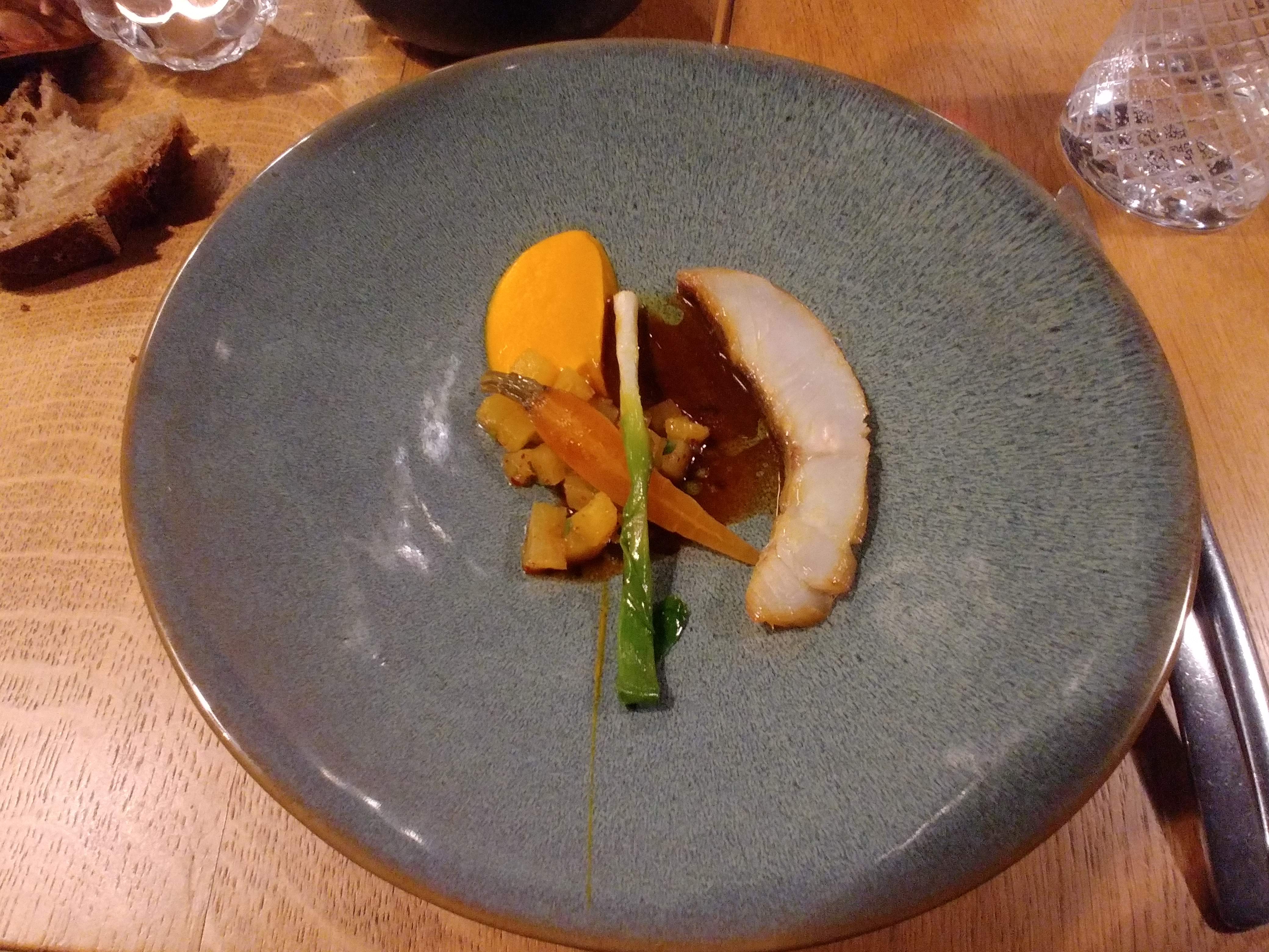 Quel bon moment de gastronomie! Très s belles assiettes, produits respectés a merveille, assaisonnements très précis. Un plus…. Les lampes…