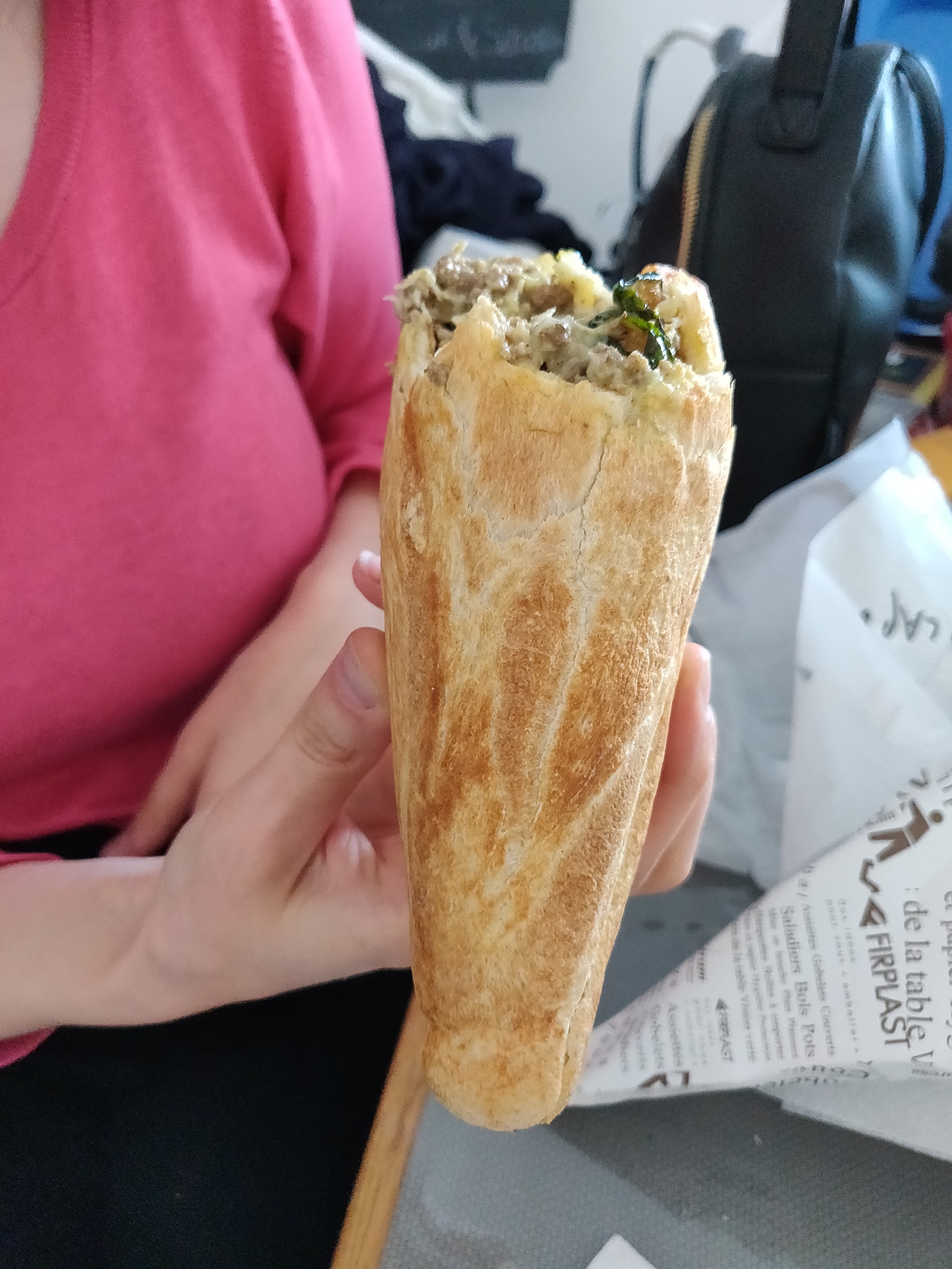 Le concept est vraiment original pour le coup ! Je n’avais jamais vu ça auparavant! C’est un peu galère à manger et malheureusement j’ai mal choisis le goût de mon plats, donc réfléchissez bien avant de commander 😉 Ce fut assez rapide et pas trop gras pour un « fast-food » Malgré la note de 3/5, je vous recommande ce fast-food pour manger rapidement en journée 😁