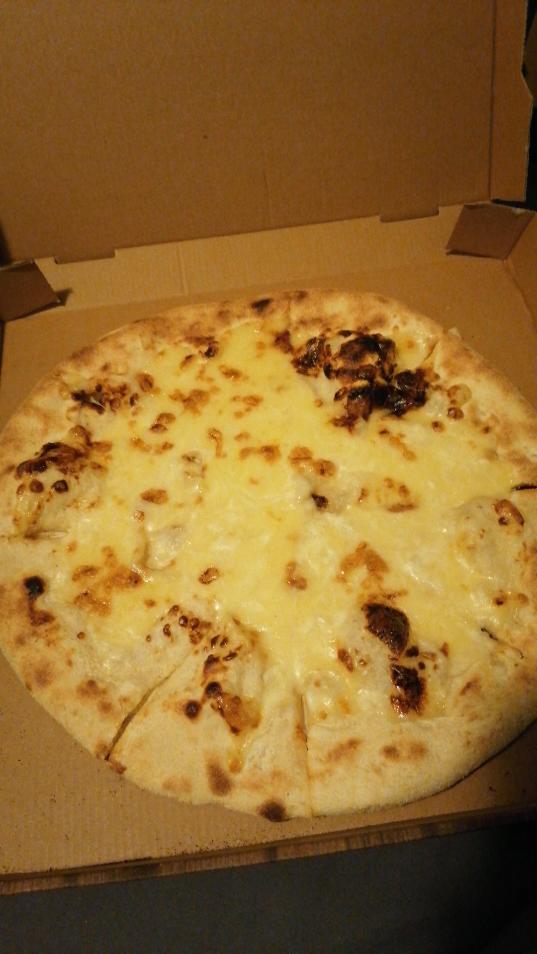 Commande de pizza de 4 fromages via Uber Eats. La pâte est ok. Mais la garniture sans saveur, un fromage farineux et sans goût.