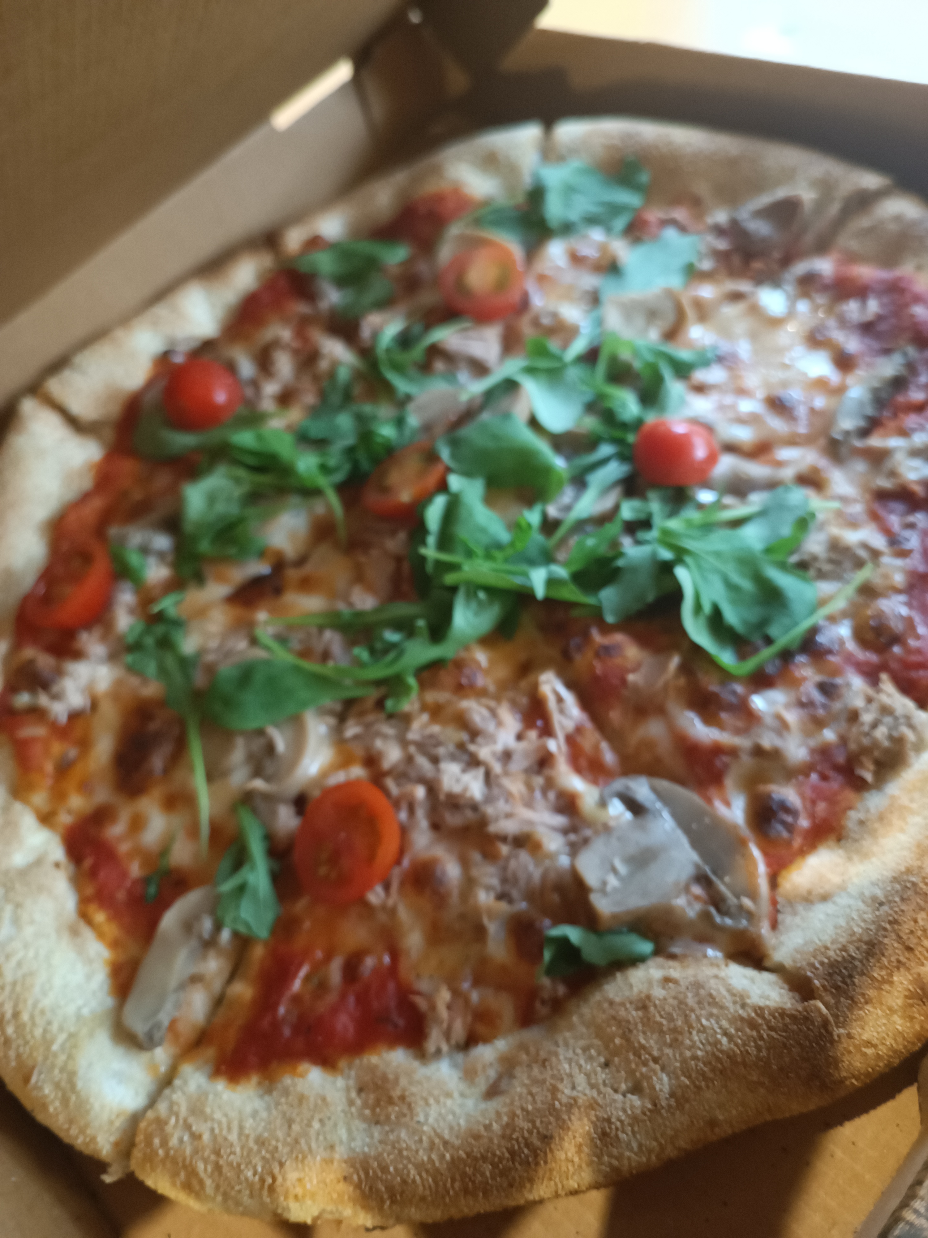 Pizza pas terrible, la pâte est correcte mais la garniture est vraiment pas terrible. La pizza vege est assez peu fourni en légumes, assez ironique pour une pizza vegé. Il y a seulement quelques poivrons, champignons(pas frais mais provenant de conserve)et oignons...