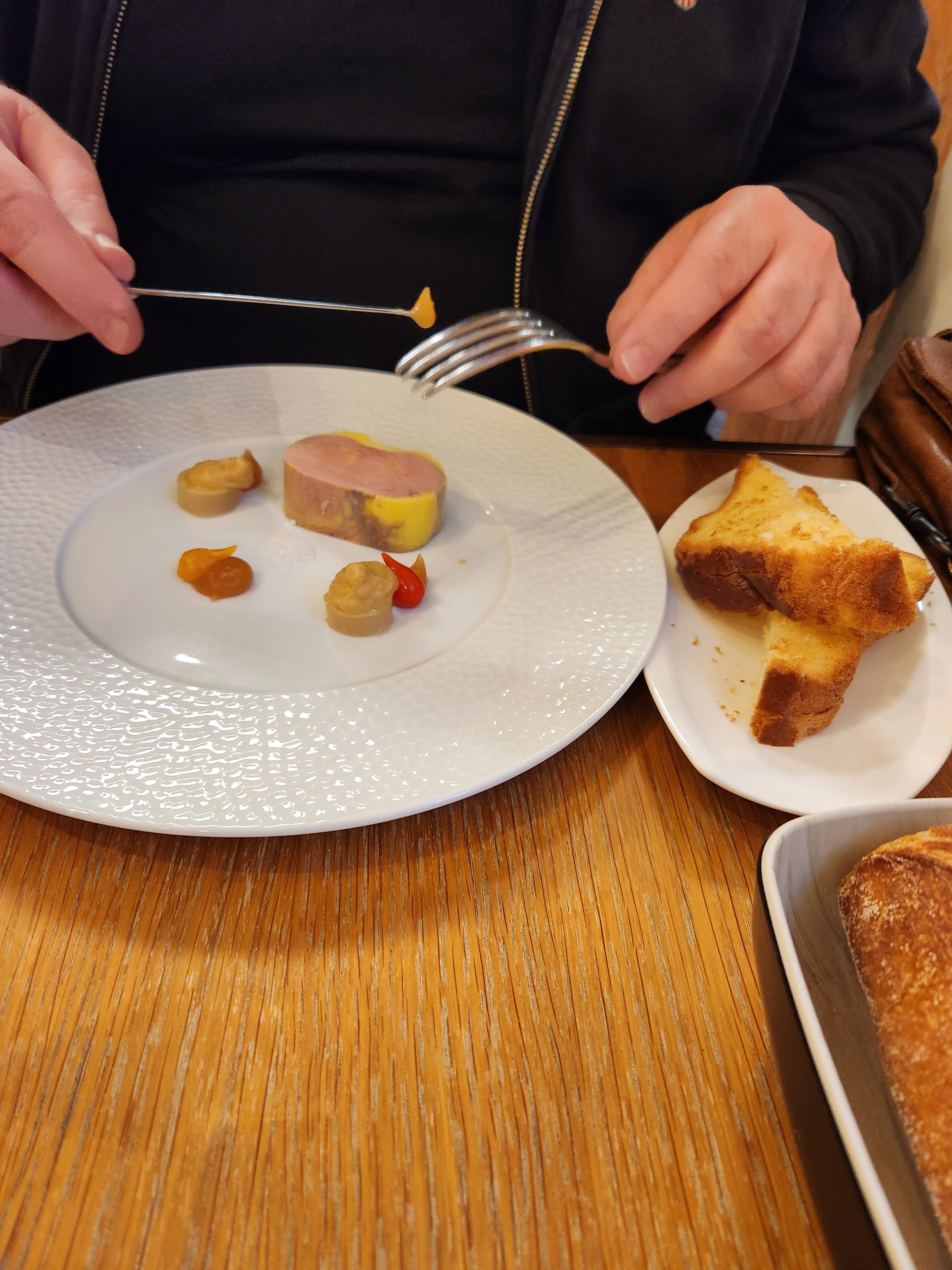 Super restaurant ! Nous avons mangé un midi . Pas d'attente et service impeccable. Le cadre est très sympa et la salle est bien disposé. La cuisine est très bonne ; Le foie gras est vraiment très très bon et le carpaccio de saint Jacques aussi . Rapport qualité / prix super . Allez-y les yeux fermés !