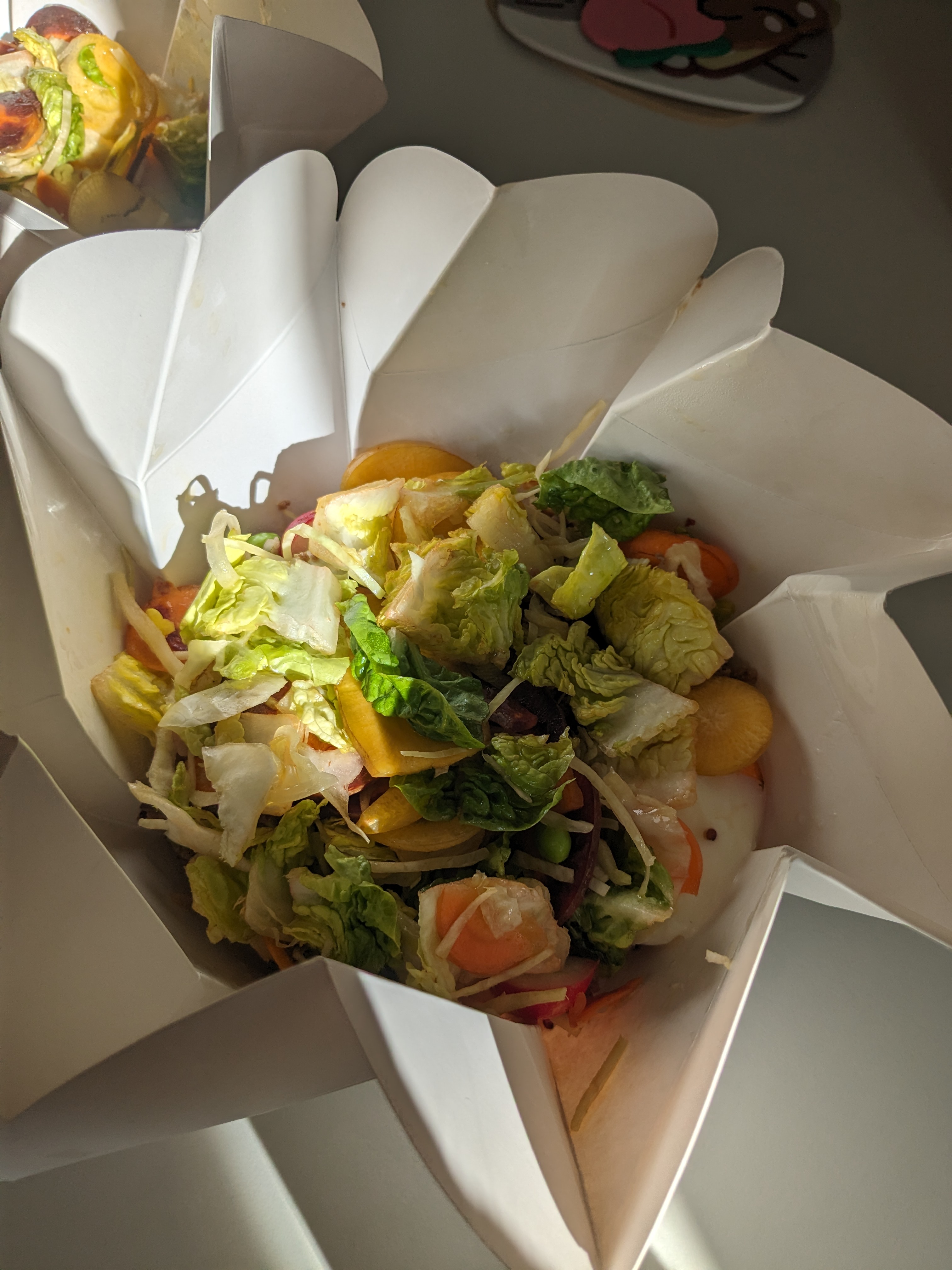 Bibimbap qui fait plus l'effet d'un restaurant salade. C'est plutôt bon mais comme peut l'être une salade. Même le côté spécialité du chef ne change pas grand chose. Le plat reste globalement très froid. A notre très grand étonnement, sur place ils vous servent tout dans du carton - même le café ; à une époque où le gaspillage/déchet est un vrai sujet c'est tout de même problématique. Pas de chauffage, porte constamment ouverte comme si ça inciterait le client à venir, ce n'est pas un endroit agréable. Probablement surtout fait pour les services Uber/deliveroo and co. Au demeurant, les employés sont très sympathiques et font au mieux. Pas certain que nous y retournerons cependant.